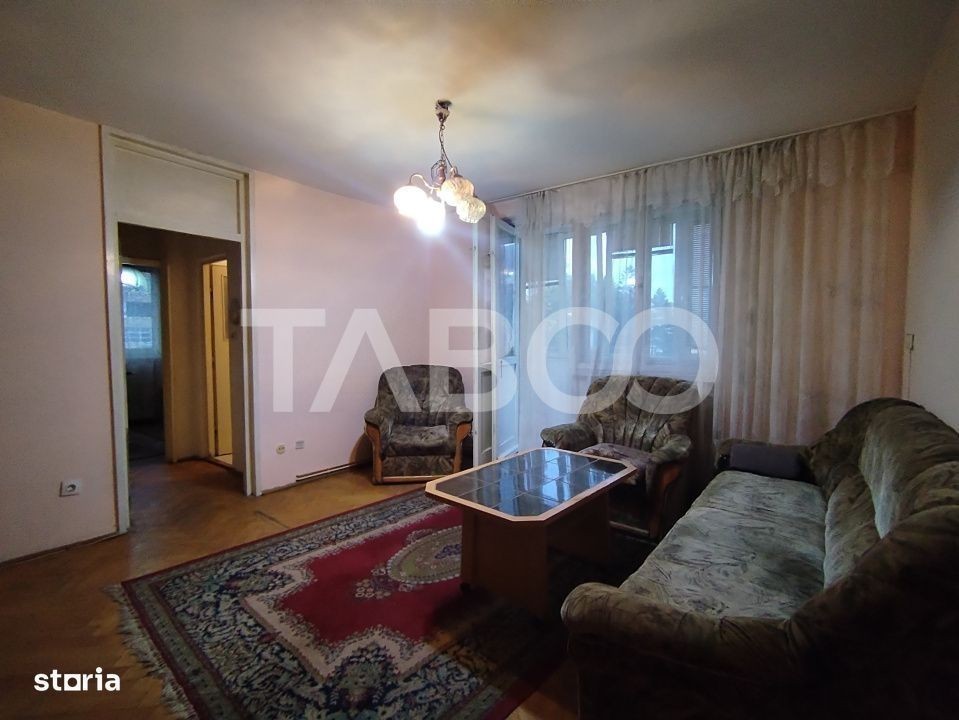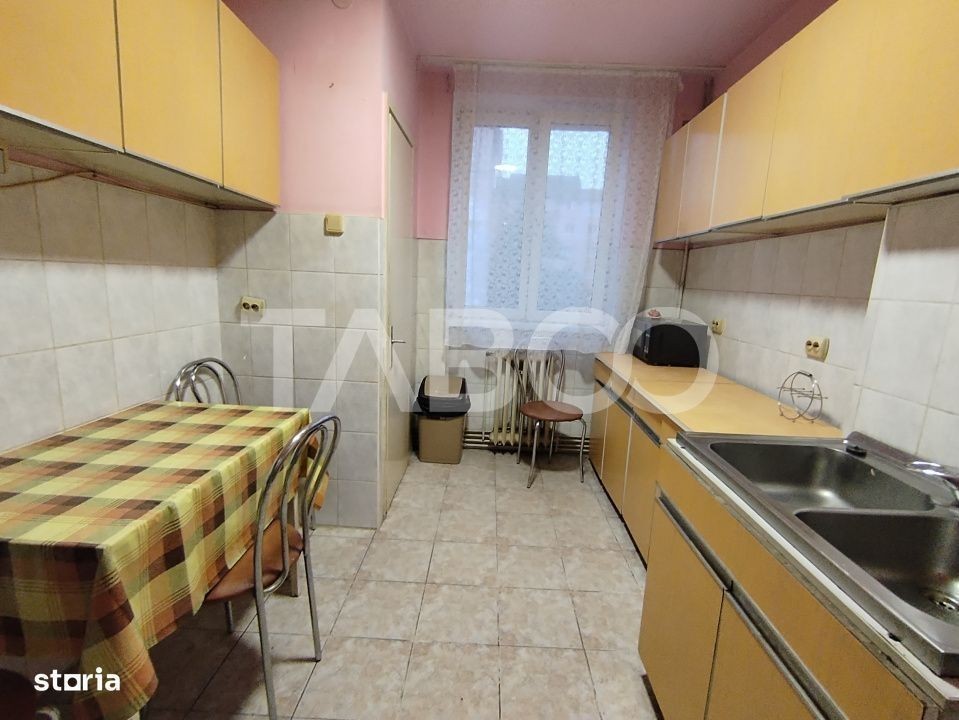 Apartament 3 camere de inchiriat, semidecomandat, 70 mp, zona Mihai Viteazul, Sibiu. Avantaje majore ale acestui apartament: *Pivnita *Loctie ferita de aglomeratie *Parcare extra pentru vizitatori TABOO Imobiliare propune un apartament de inchiriat cu 3 camere, semidecomandat, situat in localitatea Sibiu, zona Mihai Viteazul, aflat la etajul 2 intr -un imobil tip bloc cu regim de inaltime pe Parter + 4 Etaje; anul constructiei 1975, structura caramida. Suprafata utila de 70 mp + balcon de 8 mp. • Hol; • Bucatarie; • Baie; • Living cu balcon; • Dormitor cu balcon; • Hol intermediar; • Camara; • Debara; • Usa intrare: metal; • Usi interioare: celulare; • Tamplarie ferestre: pvc, termopan; • Pereti: vopsea lavabila, faianta; • Podele: parchet, gresie. • Bucatarie: mobilata, utilata; • Mobilat: complet; • Izolatii: bloc izolat termic; • Contorizare: apometre, contor gaz, contor curent electric; • Caracteristici bloc: interfon, acoperis. Apartamentul se inchiriaza mobilat si utilat cu:aragaz, cuptor, masina de spalat rufe,frigider cu congelator. Incalzirea se realizeaza prin centrala proprie cu calorifere. Pentru a se inchiria acest apartament se achita proprietarului chiria + o luna garantie. Pret: 400€ Sună-ne acum și află detalii despre această proprietate de inchiriat din Sibiu, dar și despre alte proprietăți potrivite pentru tine.