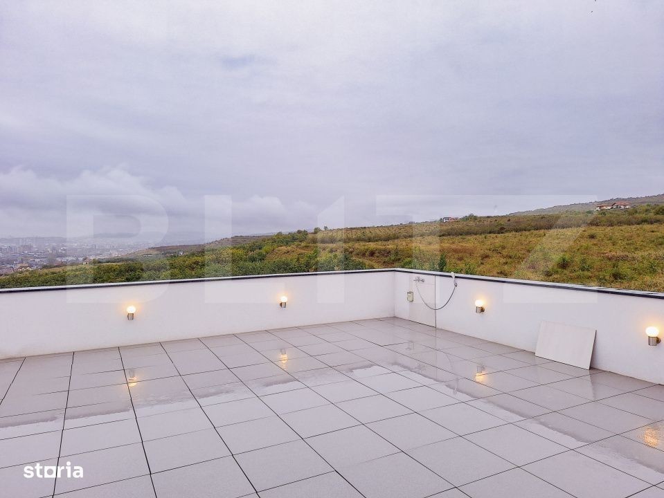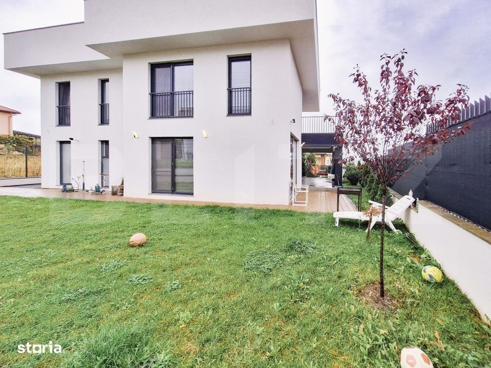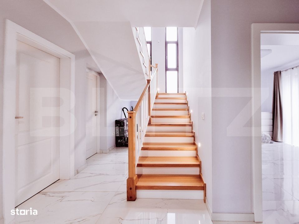 Blitz propune spre vanzare un colț de liniște și eleganță, într-o casă spectaculoasă construită în 2022, pe un teren generos de 442 mp. Proprietatea oferă 190 mp utili, un garaj de 50 mp, două terase de 40 mp fiecare, plus o terasă panoramică de 160 mp, locul ideal pentru răsărituri spectaculoase și seri sub stele. Parterul este gândit pentru relaxare și socializare => un living spațios cu ieșire pe terasa acoperită, o cameră de oaspeți, o baie modernă cu duș walk-in și o cameră tehnică bine organizată. Etajul oferă intimitate => 3 dormitoare, o baie cu cadă, un dressing generos comun, iar dormitorul matrimonial dispune de dressing propriu de 10 mp și acces la o terasă cu vedere spre oraș. Dotări premium => mobilier realizat la comandă, încălzire în pardoseală, finisaje de calitate superioară. La doar 100 m de stația de autobuz și 700 m de stația de tramvai, casa oferă acces rapid către oraș, fără a sacrifica liniștea zonei. Casa dispunde de toate utilitatile (gaz, curent, canalizare, apa). Pentru mai multe informatii va asteptam la o vizionare.