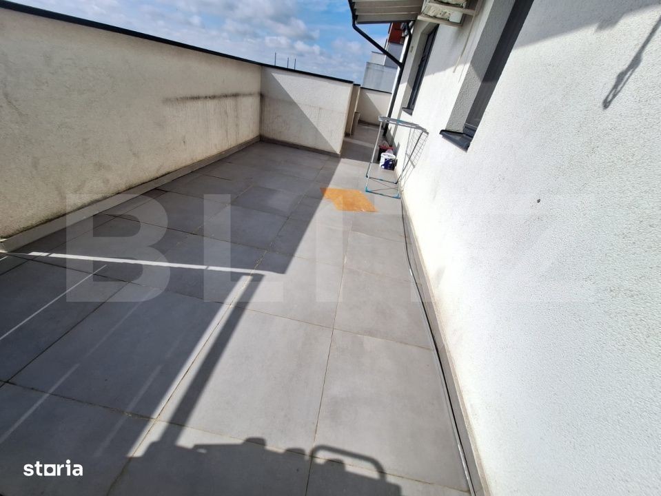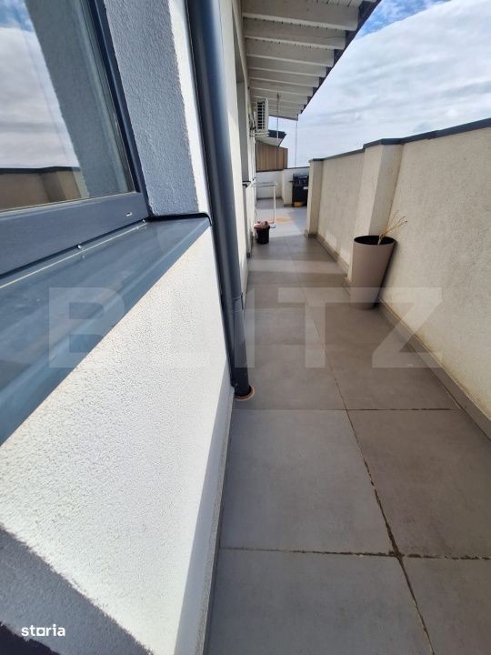 Blitz vă propune spre vânzare un apartament tip penthouse, cu 3 camere, cu o suprafață utila de 71 mp. Apartamentul este compartimentat astfel: 1 hol de intrare, 1 bucătărie open pace si un living generos, 2 bai cu geam si 2 dormitoare. Deasemnea apartamentul deține și o terasă de 27 mp și 1 loc de parcare inclus in pret. În apropierea acestuia se află restaurante, zone comerciale, cafenele. Pentru mai multe detalii, vă așteptăm cu drag la vizionări!