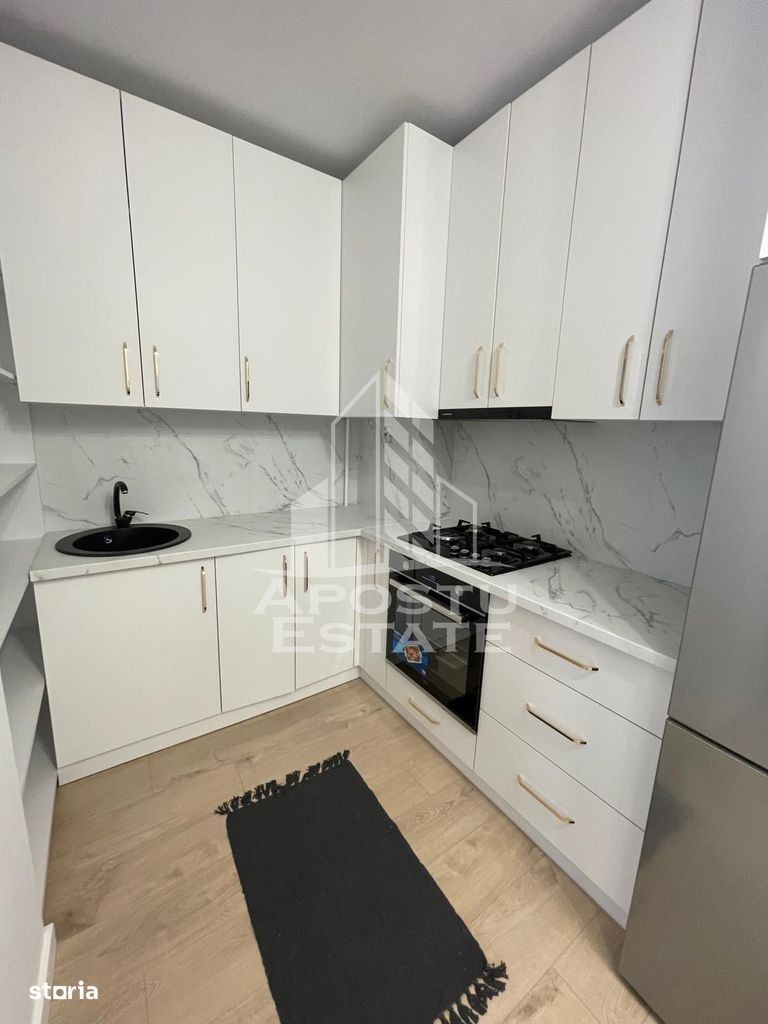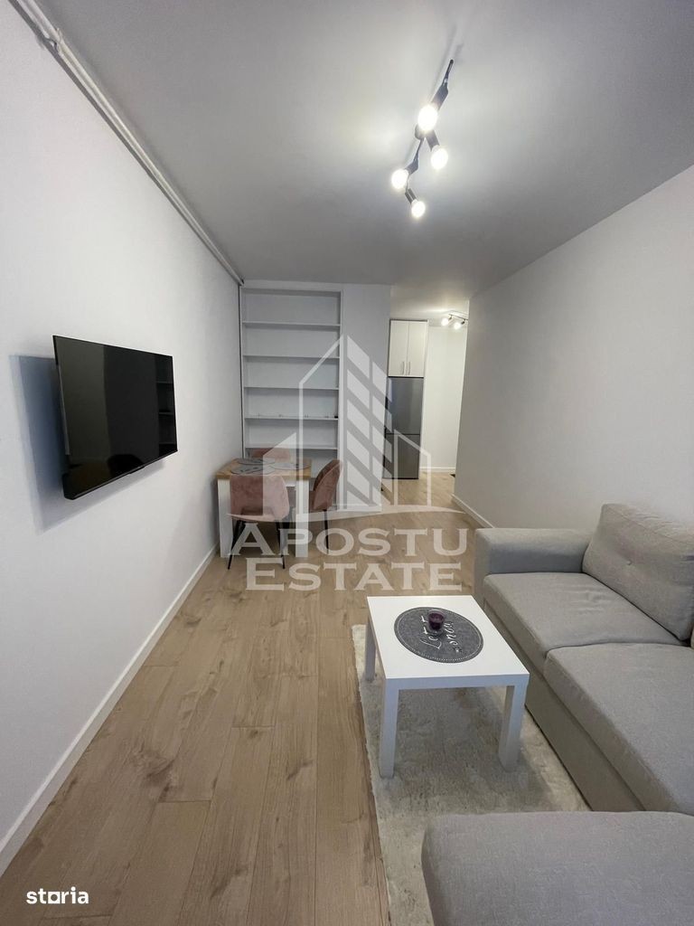 APOSTU ESTATE vă propune spre închiriere un apartament spațios și elegant, cu 2 camere, situat într-o zonă liniștită și bine conectată din zona Torontalului, ideal pentru cupluri sau persoane care doresc un spațiu generos și confortabil. Suprafață utilă: 45 mp Compartimentare eficientă: Hol de acces generos Bucătărie complet mobilată și utilată, cu loc de luat masa Debara Living luminos și spațios Dormitor matrimonial mobilat Baie cu cada și geam pentru ventilație naturală Confort și facilități: Centrală termică proprie pe gaz Incalzire prin pardoseala Aer condiționat Apartamentul este complet mobilat și util Localizare: Zona Torontalului - liniște, acces facil spre oraș, în apropiere de magazine, școli și mijloace de transport în comun. Ideal pentru: Studenti Cupluri Pret: 450 €/luna Programeaza o vizionare! CP27764011