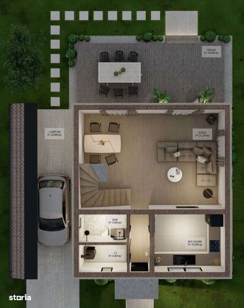 Vanzare direct de la proprietar, fara comision ! Casa model CALYOPE Construită pe o suprafață de 398 mp de teren, din care: