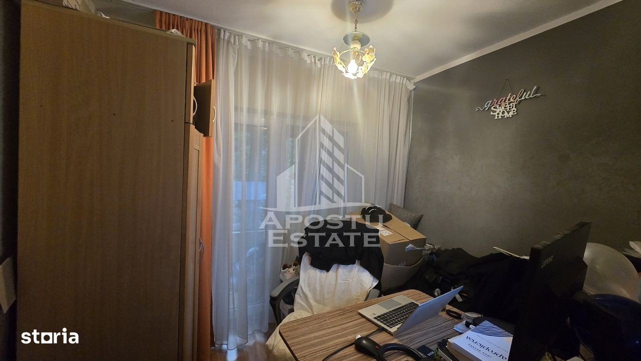 Apostu Estate va ofera spre vanzare un apartament spatios, decomandat, cu 4 camere, 2 bai si 3 balcoane, situat la etaj intermediar, etajul 3 din 4, intr-un bloc curat si linistit, cu doar doua apartamente pe nivel, in zona Aradului din Timisoara. Locatia este excelenta, la doar 1.6 km de Iulius Town Timisoara, cu acces facil catre mijloace de transport in comun, scoli, parc si supermarketuri. Apartamentul are o suprafata utila de 76 mp si este compartimentat modern, astfel incat ofera spatiu si functionalitate: hol de acces, bucatarie cu loc de luat masa, living spatios cu balcon inchis in termopan, hol intermediar, dormitor matrimonial cu balcon, baie principala, dormitor, baie de serviciu si dormitor suplimentar cu balcon inchis in termopan. Se vinde complet mobilat si utilat, fiind gata pentru mutare imediata. De asemenea, dispune de boxa spatioasa pentru depozitare. Confortul termic este asigurat prin sistemul de termoficare, iar apartamentul este dotat si cu aparat de aer conditionat. Exista posibilitatea montarii unei centrale proprii pentru un plus de confort si independenta. Aceasta proprietate reprezinta alegerea ideala pentru o familie care isi doreste un apartament luminos, spatios si bine amplasat, aproape de toate punctele importante ale orasului. Oferim consultanta bancara gratuita prin colaboratorii nostri pentru alegerea celui mai avantajos credit. Contacteaza-ne pentru detalii si programeaza o vizionare chiar astazi.