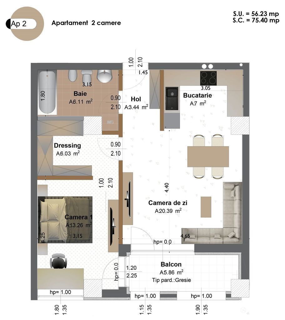 Concept 9 - Ultra lux - 2 camere - etaj 1 - loc de parcare