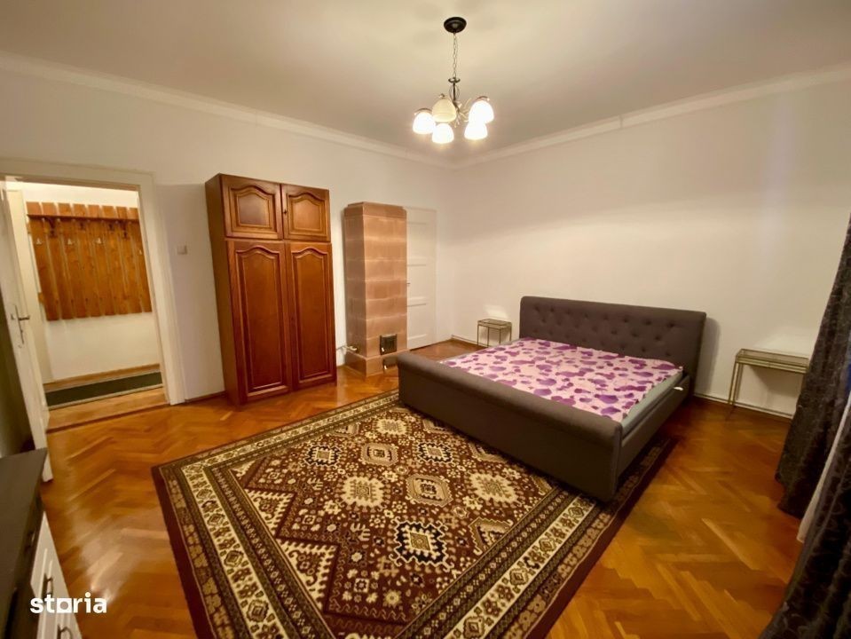 Agentia RECA va ofera spre închiriere un apartament spațios cu 3 camere si 2 bai, situat într-o casă tip vilă, cu curte comună, localizat în zona Centrului Istoric din Sibiu, fiind una dintre cele mai căutate și pitorești zone ale orașului. La o distanta de cateva minute de mers regasim Piata Mare, Piata Agroalimentara Cibin si multe alte puncte de interes social precum scoli, gradinite, magazine si zone verzi. Sobele au fost pastrate ca elemente decorative! Apartamentul este complet decomandat, ideal pentru o familie, un cuplu sau chiar pentru birou, cu o suprafață generoasă de 110 mp utili, distribuiti astfel: -living -2 dormitoare -bucatarie separata -2 bai -hol -pod -pivnita Pretul de inchiriere este 500 euro/luna. Se percepe o luna garantie si se doreste contract pe minim 1 an. Nu se accepta cu animale de companie. Va stam la dispozitie cu toate informatiile si sprijinul necesar pentru a ne asigura ca intreg demersul inchirierii va decurge perfect!