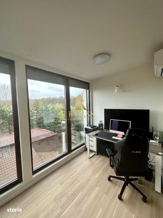 Klass Estates va prezinta spre inchiriere un Duplex modern cu 5 camere, finisaje premium, la 2 minute de Pădurea Băneasa Descoperă un spațiu elegant și luminos, situat într-una dintre cele mai apreciate zone rezidențiale din nordul Capitalei - Pipera, la doar câteva minute de școlile internaționale și zonele verzi ale Pădurii Băneasa. Detalii cheie • Suprafață utilă: 160 mp • Compartimentare: living generos, 3 dormitoare, 1 cameră birou/home cinema, dressing spațios, 3 băi • Bucătărie închisă cu pereți de sticlă • Terasă principală de 20 mp + terasă secundară de 3 mp • Cămară și spălătorie echipată cu uscător • 1 loc de parcare subteran inclus Dotări & Finisaje Premium • Mobilat complet, cu mobilier modern de calitate superioară • Electrocasnice premium • Finisaje elegante, atenție la detalii • Spații vitrate ample, lumină naturală din abundență Avantaje & Locație • 2 minute de mers până la Pădurea Băneasa (Forest Hill) • Acces rapid către Școala Americană, Școala Britanică, Școala Franceză, Mark Twain • Zonă liniștită, cu acces facil către aeroport, centre comerciale și business hub-urile din Nord Preț: 1950€ + 1 luna garantie Contact Klass Estates Pentru mai multe detalii sau o vizionare privată, contactează-ne direct. Klass Estates - găsim împreună locul care ți se potrivește.