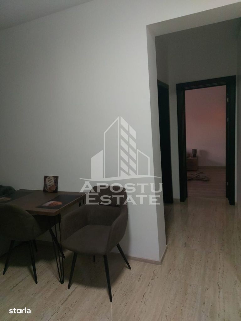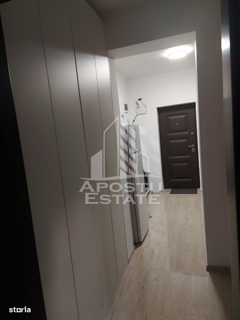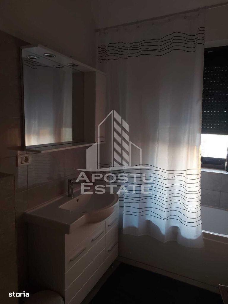 Apostu Estate va propune spre inchiriere un apartament modern cu 1 camera, situat la parter, in zona Giroc Locuinta este parte a unui bloc nou, finalizat in 2024, cu regim de inaltime P+2E. Apartamentul se afla la parter, este decomandat, complet mobilat si utilat, fiind ideal pentru o persoana singura sau un cuplu care isi doreste confort, functionalitate si acces facil catre oras. Caracteristici tehnice: Suprafata utila: 34 mp Compartimentare: decomandat Etaj: parter (din 3) Numar camere: 1 Dormitor: 1 Bai: 1 (cu geam) Boxa: da Loc de parcare: da (inclus) Dotari si facilitati: Incalzire: centrala proprie + incalzire in pardoseala Aer conditionat TV + cablu Internet Frigider Masina de spalat rufe Masina de spalat vase Aragaz, hota, cuptor cu microunde Dressing Rulouri exterioare Baie cu cada si geam pentru ventilatie naturala Conditii de inchiriere: Perioada minima: 1 an Accepta: cupluri, persoane singure Localizare: Apartamentul este situat in Giroc, zona linistita, cu acces rapid catre oras, aproape de facilitati esentiale: magazine, mijloace de transport, scoli. Pret chirie: 370 EUR/luna Contact proprietar:CP2764399