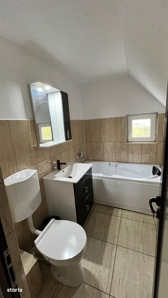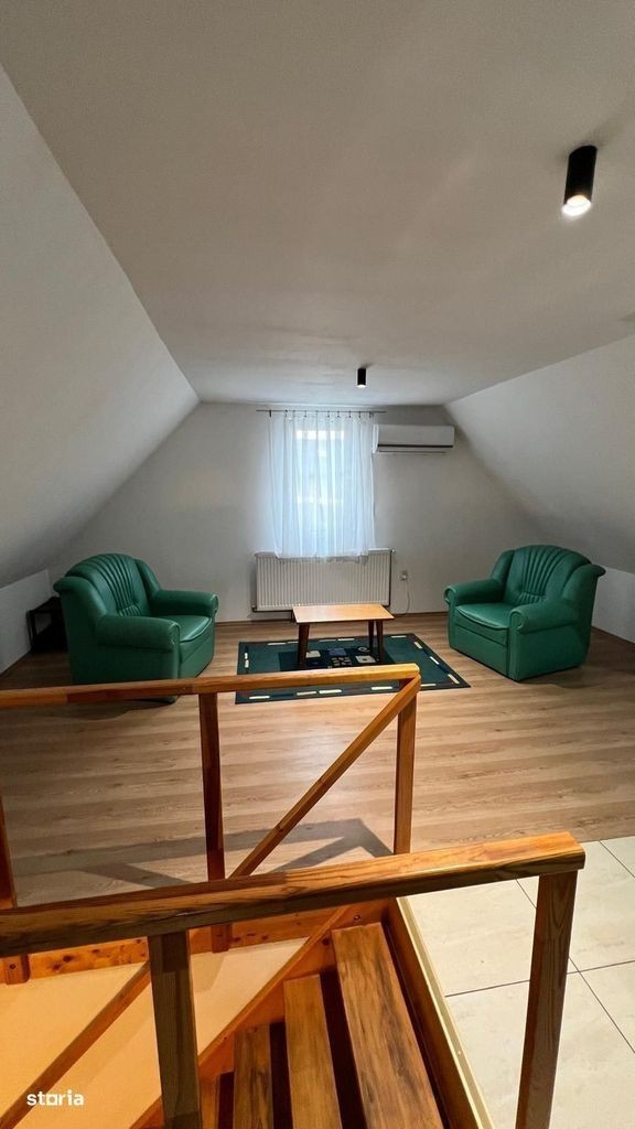 ID: CP2766727 SAMV Imobiliare îți prezintă pentru închiriere o vilă cochetă P+M care te cucerește prin armonie, confort și simplitatea elegantă a detaliilor. Situată la intrarea în Dumbrăvița, într-o zonă liniștită și verde, această locuință oferă un echilibru ideal între intimitatea unei case individuale și accesul rapid către oraș. Casa are o suprafață de 100 mp, este complet mobilată și utilată, și se află pe un teren de 670 mp, oferind spațiu generos atât la interior, cât și în curtea îngrijită. Compartimentare inteligentă și funcțională: * Parterul găzduiește un living primitor, cu zonă de relaxare și lumină naturală din abundență, o bucătărie complet echipată, un dormitor confortabil, o baie elegantă cu cadă și un dressing spațios, amenajat ca o cameră separată. * La mansardă, atmosfera devine mai intimă - un dormitor suplimentar, un al doilea living, ideal ca zonă de hobby sau birou, și o baie cu duș, perfectă pentru confortul zilnic. Confort și dotări: • Încălzire pe gaz și aer condiționat pentru un climat perfect în orice anotimp • Mobilier modern, finisaje curate și spații optimizate • Curte spațioasă, gazon îngrijit și loc de parcare acoperit • Pet friendly - locuință potrivită și pentru iubitorii de animale • Zonă sigură, cu vecini civilizați și atmosferă relaxată Beneficii locație: Casa este situată într-o zonă liniștită și bine conectată, aproape de magazine, restaurante, cafenele, farmacii și parcuri, la doar câteva minute de Timișoara. Accesul este facil, iar liniștea specifică Dumbrăviței face din această locuință o alegere excelentă pentru o familie sau un cuplu care caută un cămin echilibrat, luminos și complet funcțional. Aici poți avea un cămin care oferă spațiu, liniște și rafinament în egală măsură. Perfect pentru cei care apreciază confortul vieții moderne, într-un cadru natural și primitor.