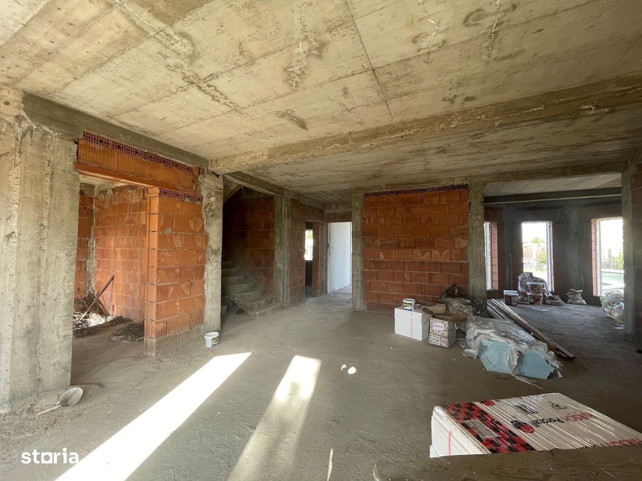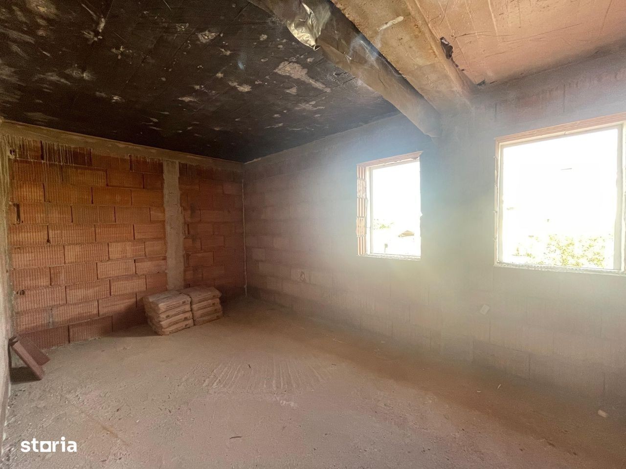 Va propun spre vanzare o casa individuala situata intr-o zona foarte buna, aflata in stadiul de rosu, perfecta pentru cei care isi doresc libertatea de a transforma fiecare spatiu intr-un loc cu personalitate. Casa dispune de 6 camere, 202,59mp utili, garaj de 20,16mp si doua terase acoperite de 22,41mp si 9,13mp, fiind completata de un teren generos de 735mp, perfect pentru gradina, zona de relaxare, loc de joaca pentru copii sau chiar o piscina. Compartimentarea este realizata astfel: Parter • hol acces • baie • dormitor • living • bucatarie • terasa • garaj Etaj • hol • baie • 4 dormitoare dintre care unul cu baie proprie Incalzirea prin pardoseala si centrala proprie iti asigura caldura si confort in toata casa, chiar si in zilele cele mai friguroase. Utilitatile sunt: apa, gaz, curent, canalizare si iluminat public Detalii constructie: - structura din beton si caramida - acoperis din tigla - izolatie exterioara din polistiren EPS80 de 10cm - tamplarie PVC cu geamuri tripan Pret predare la stadiul actual: 235.000€ Te astept sa vezi cum poti transforma acesta proprietate intr-un „acasa" perfect pentru tine si familia ta! Suna la