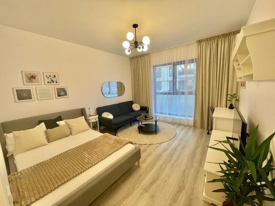 Direct proprietar, vand garsoniera premium, situata in complexul rezidential Exigent Plaza Residence, faza 5, blocul 3, parter. Locatia este excelenta, la numai 5 minute de mers pe jos de Mall Plaza Romania, 7 minute de Mall Afi Cotroceni, 7 minute de metroul Drumul Taberei si 12 minute de metroul Lujerului. Garsoniera se vinde mobilata si utilata complet, cu finisaje, mobilier si electrocasnice de calitate superioara. Beneficiaza de dotari premium: pat dublu matrimonial, dressinguri spatioase, canapea extensibila, centrala termica in condensatie, aer conditionat, televizor Smart TV. Langa complex este amenajat un parc nou iar in spatele complexului a fost finalizat parcul Liniei, ce uneste zona Lujerului de Afi Cotroceni.