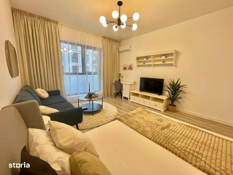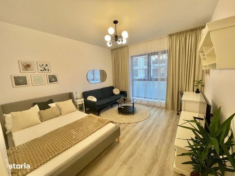 Direct proprietar, vand garsoniera premium, situata in complexul rezidential Exigent Plaza Residence, faza 5, blocul 3, parter. Locatia este excelenta, la numai 5 minute de mers pe jos de Mall Plaza Romania, 7 minute de Mall Afi Cotroceni, 7 minute de metroul Drumul Taberei si 12 minute de metroul Lujerului. Garsoniera se vinde mobilata si utilata complet, cu finisaje, mobilier si electrocasnice de calitate superioara. Beneficiaza de dotari premium: pat dublu matrimonial, dressinguri spatioase, canapea extensibila, centrala termica in condensatie, aer conditionat, televizor Smart TV. Langa complex este amenajat un parc nou iar in spatele complexului a fost finalizat parcul Liniei, ce uneste zona Lujerului de Afi Cotroceni.