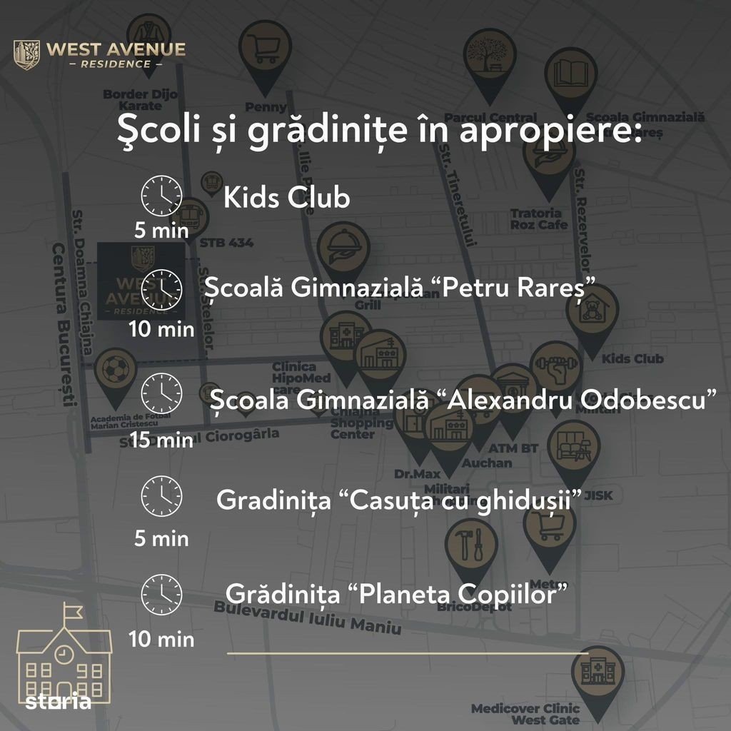 Mai mult decât un ansamblu. Un concept de viață urbană premium, orientat spre confort, intimitate și eficiență. La West Avenue Residence descoperi mai mult decât un apartament: • Acces rapid și infrastructură completă - drumuri asfaltate, utilități moderne și tot ce ai nevoie aproape