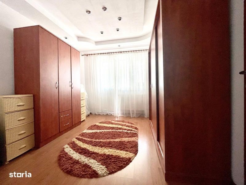 Vand apartament cu 3 camere, semidecomandat, compartimentat astfel: hol, bucatarie, sufragerie, hol, dormitor mic, baie, dormitor mare cu balcon inchis. Apartamentul se vinde mobilat, exact ca in poze. Imobilul are suprafata utila de 57 mp + balcon deschis ce curprinde bucataria, sufrageria si dorimtorul mic + balcon inchis cu iesire din dormitorul mare. Este situat in centru, pe strada Inginer Badea Romeo, la etajul 1 ( deasupra Cofetariei M&M) si are vedere atat in spatele blocului cat si in fata. Pret: 97000 €. ( negociabil)
