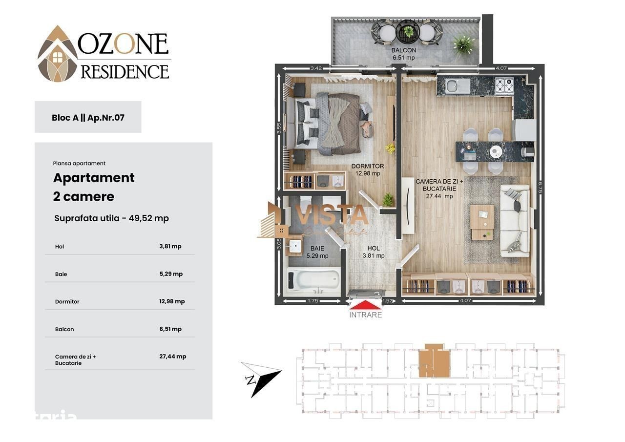 Vista Real Estate va propune spre vanzare un apartament cu 2 camere tip studio, situat in ansamblul Ozone Residence - Ioan Popasul. Imobilul este amplasat la etajul 1 intr-un bloc cu 4 etaje si este compartimentat astfel: hol, dormitor, living + bucatarie, un grup sanitar si un balcon care poate fi accesat atat din living cat si din dormitor. Locul de parcare este inclus in pret. Vista Real Estate, formata dintr-o echipa de profesionisti in imobiliare, sunt gata sa te reprezinte indiferent de nevoia ta imobiliara: servicii de intermediere si consultanta, promovare, evaluarea bunurilor imobiliare, asistenta juridica, investitii imobiliare și administrarea proprietatilor. Noi credem ca tranzactia imobiliara este incheiata atunci cand persoanele care ne trec pragul recomanda, oricand, fara ezitare, Vista Real Estate. Conform certificatului de performanta energetica, apartamentul prezinta urmatorii indicatori de performanta: - clasa energetica A, - consum anual specific de energie 181.26 kwh mp.an, - indicele de emisie echivalent CO2 =33.19 kgCO2 mp.an, - consum anual specific de energie din surse regenerabile 0 kwh mp.an.
