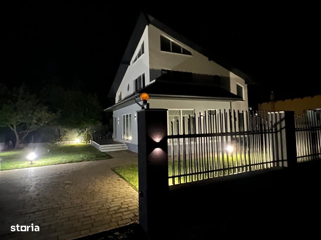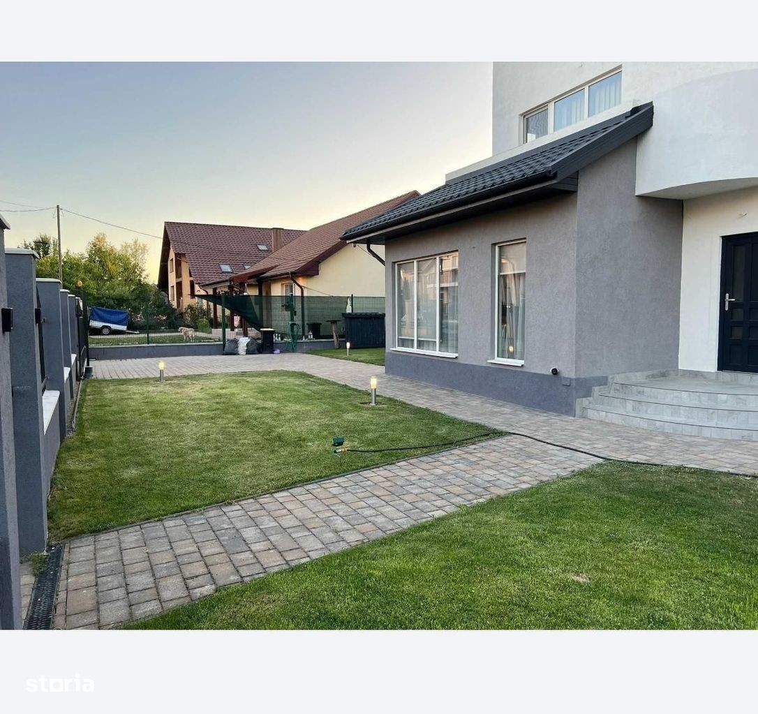 COD INTERN ANUNT V/4673H. AGENTIA MAO IMOBILIARE !NU SE PERCEPE COMISION DE LA CUMPARATOR! Echipa Mao Imobiliare ofera spre vanzare o casa situata in Sangeorgiu de Mures, strada Nordului, o zona superba, linistita si usor accesibila. Casa este construita in 2010, pe 2 nivele P+M, are o suprafata utila de 175 mp, si o suprafata teren de 450 mp. Parterul compus din 1 living, 1 bucatarie spatioasa, si 1 birou care poate fi folosit ca dormitor si 1 terasa de 16 mp. La etaj (mansarda) sunt 3 dormitoare fiecare cu dressing, 1 baie si 1 balcon deschis. Dotata cu apa, gaz, canalizare, centrala termica, geamuri termopan, usa metalica la intrare, aer conditionat, gresie, faianta, parchet melaminat, amenajata, mobilata si utilata complet. Exista instalatie cu panouri voltaice si acumulatori cu o putere de 14 kv. Dispune de o curte amenajata superb cu pavaj, copaci ornamentali, gazon. Poarta auto de 6 m automata. Loc de parcare amenajat in curte pentru 2 masini. Cei interesati pot achizitiona imobilul la pretul de 353,000 Euro. Pentru mai multe informatii ne puteti contacta la numarul de telefon: