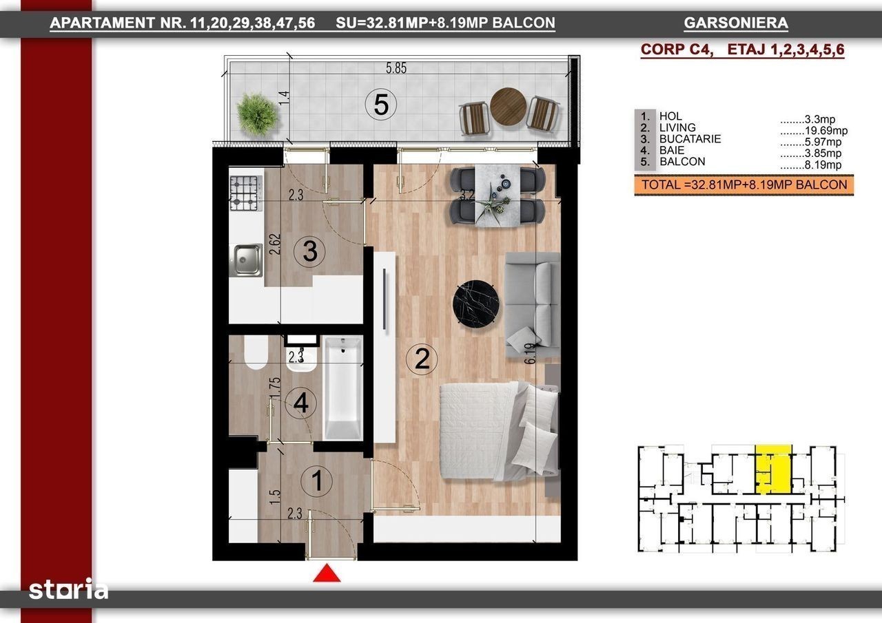 Direct dezvoltator vanzare in bloc nou, garsoniera cu bucatarie inchisa, la cateva minute fata de pasarela Metrou Berceni, pe strada Biruintei. Pret 69400 euro, tva inclus. Se poate vinde si cu credit ipotecar, la pretul de 73000 euro cu tot cu tva, pe etajele 5 si 6.