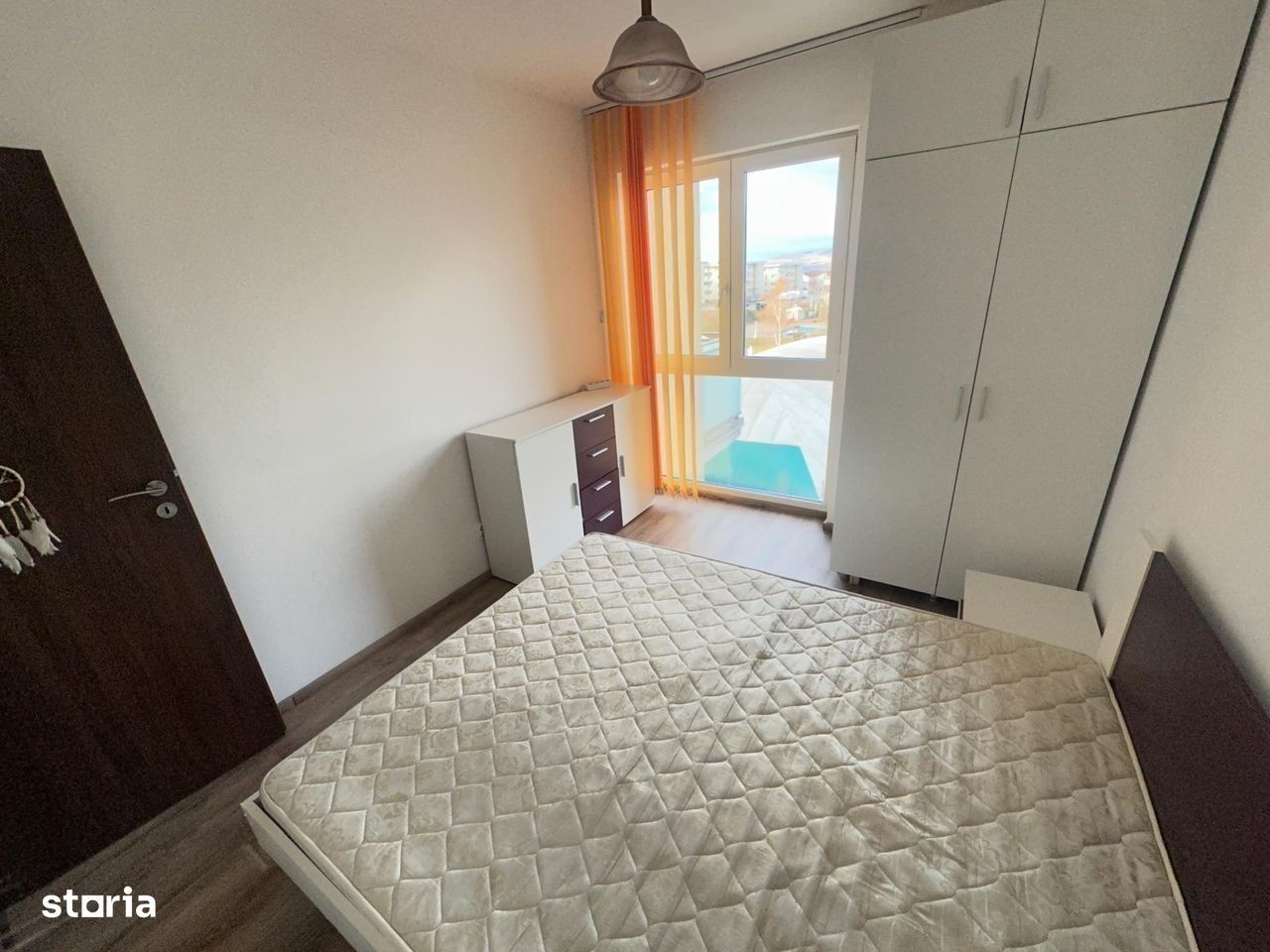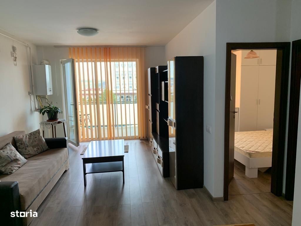 Va propun spre inchiriere un apartament cu 2 camere semi-decomandat situat in cartierul Buna-Ziua, complex Grand Hill. Apartamentul se afla la etajul 4 intr-un imobil cu 8 etaje. Compartimentarea este semi decomandata si are o suprafata utila de 56 mp,fiind impartiti astfel: