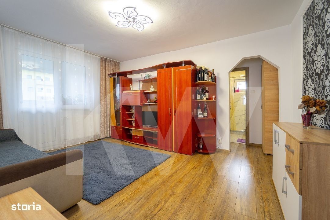 Vă propunem spre vânzare un apartament cu 2 camere, semidecomandat, situat la etajul 4 din 5 al unui imobil aflat în cartierul Vasile Aron, pe Strada Semaforului, o zonă foarte bine cotată pentru locuire sau investiție în Sibiu. Suprafața totală este de 42 mp, din care 2,5 mp reprezintă balconul închis, cu vedere către strada semaforului Apartamentul este complet mobilat și utilat, ideal pentru mutare imediată sau închiriere. Locuința beneficiază de multiple îmbunătățiri recente: Centrală termică nouă Parchet nou Baie renovată complet, cu geam exterior Pivniță inclusă în preț Localizare excelentă, cu acces facil către: Stații de autobuz (1-2 minute) Magazine și supermarketuri (Profi Non-Stop lângă bloc) Bănci, farmacii, creșe, grădinițe și școli Apartamentul se predă la cheie, exact ca în fotografii. Proprietarii se mută într-o locuință mai spațioasă. Pentru mai multe informații sau pentru a programa o vizionare, nu ezitați să ne contactați. Oferim seriozitate și transparență pe tot parcursul procesului de achiziție.