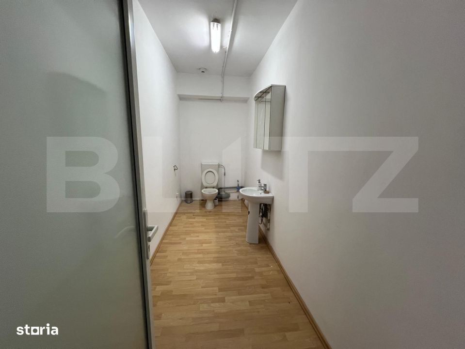 BLITZ vă propune spre închiriere un spațiu de birouri modern, situat la etajul 1 al complexului Artema Shopping City, una dintre cele mai noi și dinamice zone comerciale din Cluj-Napoca. Spațiul are o suprafață utilă de 130,68 mp, compartimentat în 6 încăperi și o baie, fiind potrivit pentru activități de birou, servicii profesionale, call center, consultanță sau alte domenii similare. Livrarea se face în stare “shell & core”, oferind posibilitatea de amenajare personalizată conform nevoilor chiriașului. Locație: Artema Shopping City, Cluj-Napoca Etaj: 1 Suprafață utilă: 130,68 mp Compartimentare: 6 încăperi + 1 baie Detalii: Servicii comune (SC): 0,85 €/mp/lună Durata minimă a contractului: 3 ani (unbreak) Indexare: conform HICP anual UE Perioadă de grație: 2 luni sau până la începerea activității comerciale Avantaje: Poziționare excelentă, într-o clădire comercială modernă Acces facil și vizibilitate ridicată Posibilitate de amenajare la cerințele chiriașului Spațiu luminos, ideal pentru birouri corporate sau servicii