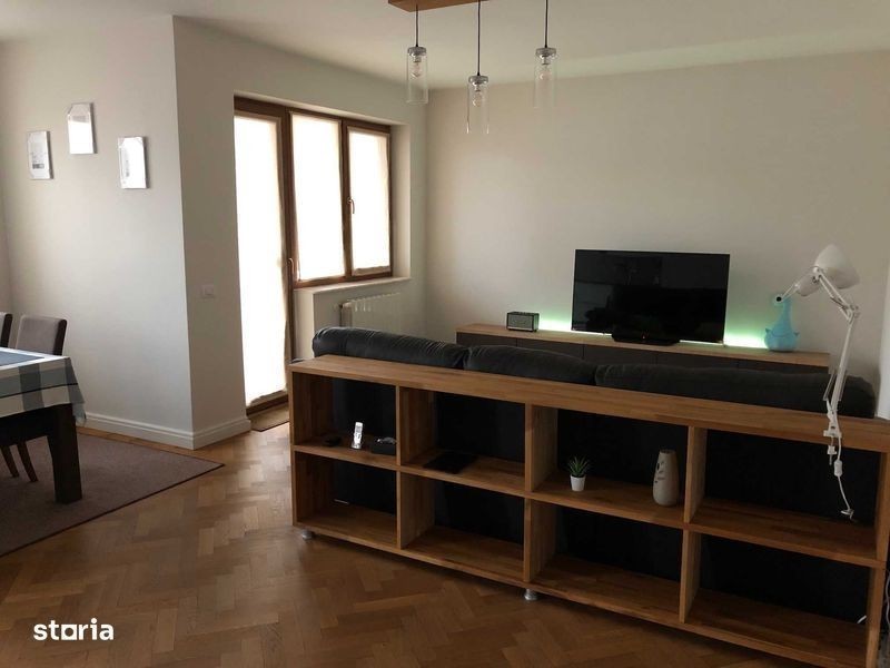 Proprietar, vand apartament de 4 camere in vila, 125mp utili in Andrei Muresanu, zona str Predeal, zona parcului Engels. Total 155mp, din care: 125mp apartamentul, 14mp pivnita/boxa subsol, 16mp garaj. Apartamentul dispune de living + dining + bucatarie open space, hol, 3 camere si 2 bai si 3 balcoane. Este ultra finisat (parchet masiv de stejar), bucatarie dotata complet (plita electrica, hota, cuptor, masina de spalat vase, frigider, cuptor cu microunde), baile sunt dotate cu lavoare si vase Villeroy & Boch, baterii Kludi, usi cu yale magnetice, aer conditionat Daikin, etc. Apartamentul include si loc de parcare in fata imobilului si un garaj (~16mp), boxa la subsol (~14mp) si cota parte de gradina din spate, cota parte din podul inalt, cota parte din spatiu tehnic din subsol. Incalzirea se face cu centrala termica individuala pe gaz cu condensare Vaillant. Toate utilitatile sunt trase separat la acest apartament (apa canal, gaz, curent). Este situat la etajul 1 intr-o casa/vila cu 6 apartamente in total (cate 2 pe nivel), dispusa pe P+2, apartamentul acesta fiind cel mai bine pozitionat (etaj intermediar) si cu orientarea foarte buna.