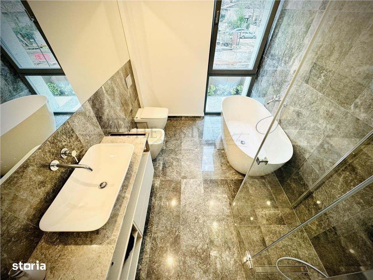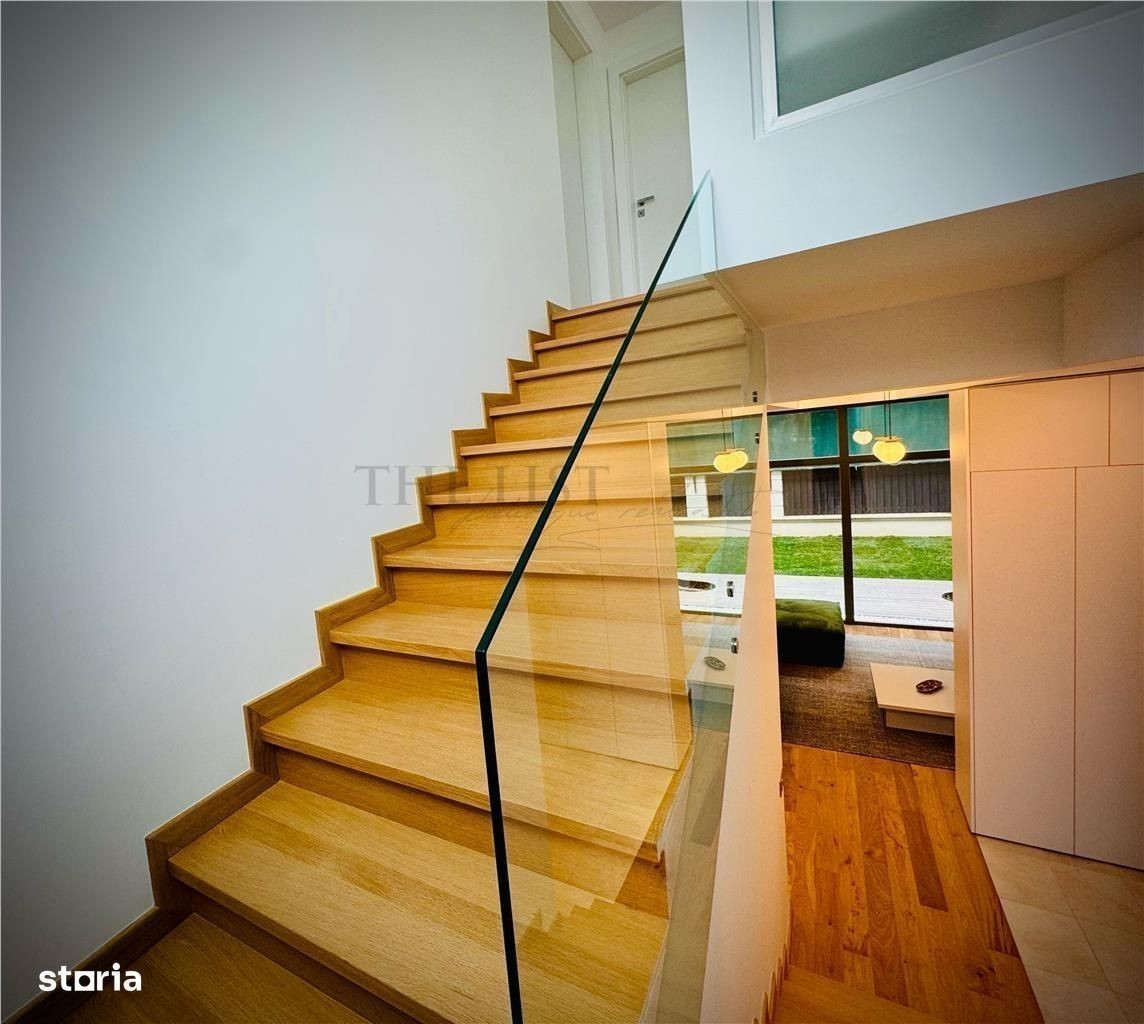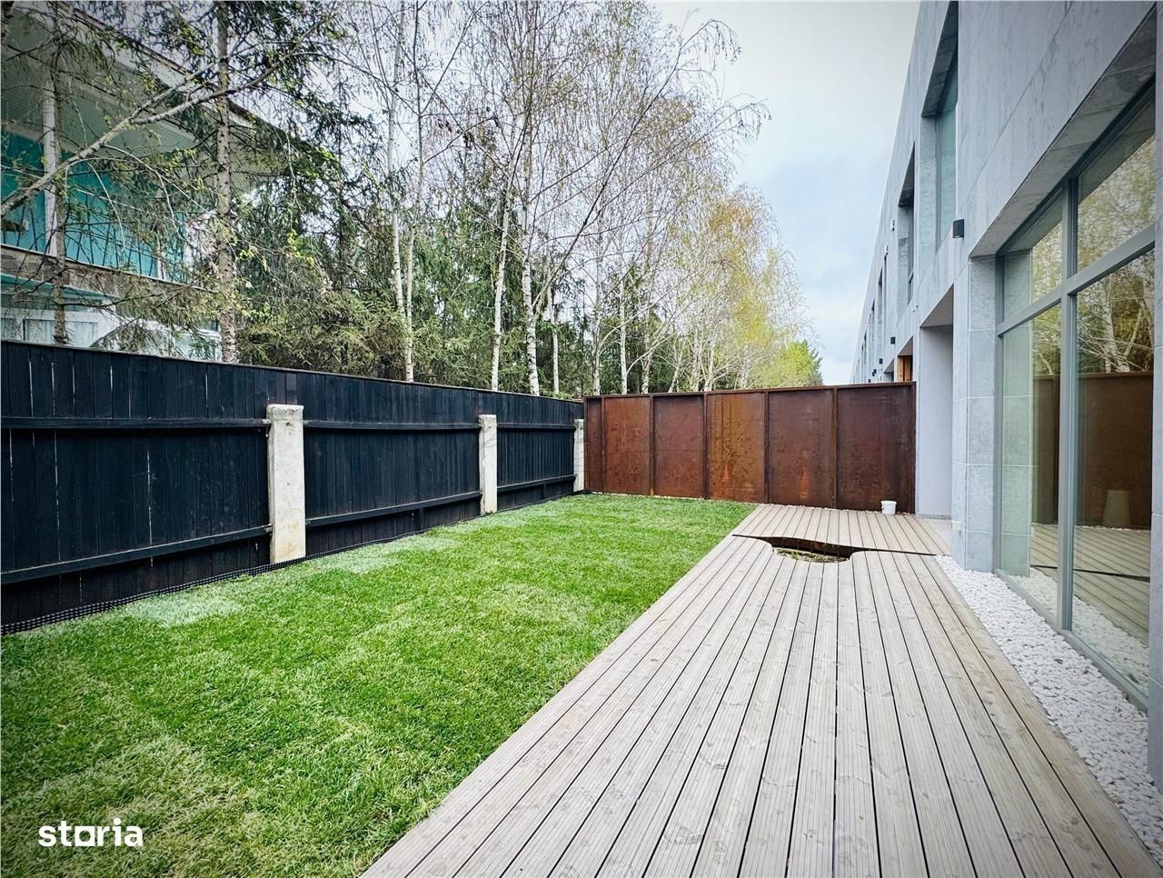 Townhouse cu Arhitectură Modernă și Concept Unic - De Închiriat în Ansamblu Nou în Pipera Voluntari Descoperiți o oportunitate rară de a locui într-un complex rezidențial de top, într-o locație de prestigiu din partea de nord a Bucureștiului, Pipera Voluntari. Această casă tip Townhouse cu arhitectură modernă oferă un design unic, ce îmbină luxul, confortul și funcționalitatea, fiind ideală pentru cei care doresc un trai rafinat și conectat la facilități de primă clasă. Suprafață: Parter: 82 mp, cu terasă și grădină de 55 mp. Etaj: 80 mp. Terasă circulabilă: 83 mp. Suprafața totală teren: 152 mp. Detalii Exterioare: Complex rezidențial securizat, cu supraveghere video și acces controlat. Parcare acoperită pentru fiecare unitate și parcări pentru vizitatori. Curte interioară cu pavaj din beton și granit travertin, iluminat stradal și arhitectural. Zona de joacă pentru copii, locuri de relaxare și spații verzi amenajate. Detalii Interioare: Parter: Living + dining spațios (31,3 mp), bucătărie complet echipată (10,1 mp), grup sanitar (2,8 mp). Etaj: Dormitor matrimonial (17,4 mp) cu baie proprie (6,4 mp) și dressing (2,2 mp), două dormitoare suplimentare (16,5 mp și 15,5 mp), baie suplimentară (7,4 mp). Acces direct la terase și grădini (55-60 mp), cu o terasă circulabilă de 83 mp. Caracteristici Tehnice și Dotări: Eficiență energetică ridicată conform standardelor nZEB. Încălzire în pardoseală și sistem de ventilație cu recuperare de căldură în fiecare cameră. Pompa de căldură geotermală - soluție ecologică de încălzire. Sistem de răcire pasivă prin ventiloconvectoare. Finisaje sustenabile și structură din beton și cărămidă Porotherm. Smart home ready, infrastructură pentru priza de mașină electrică și canal pentru sistem fotovoltaic pe terasă. Localizare Premium: Zona de Nord a Bucureștiului, una dintre cele mai dezvoltate și apreciate zone ale capitalei. Aproape de unități de învățământ internaționale de prestigiu. Acces rapid la zona de birouri din nordul capitalei și la centre comerciale, precum Baneasa Shopping Center, IKEA și magazine de bricolaj. Vecinătatea Pădurii Băneasa și acces facil la aeroporturile Aurel Vlaicu și Henri Coandă. Casa se închiriază complet mobilată și utilată, cu trei locuri de parcare (două acoperite și unul deschis). Este locul ideal pentru o familie care dorește să trăiască într-un mediu modern și sigur, înconjurată de toate facilitățile necesare unui stil de viață deosebit. Pret: 2490 EUR + TVA Pentru mai multe informații sau pentru a programa o vizionare, nu ezitați să ne contactați astăzi!