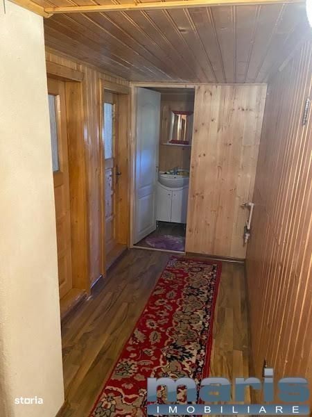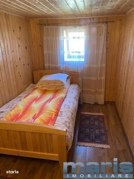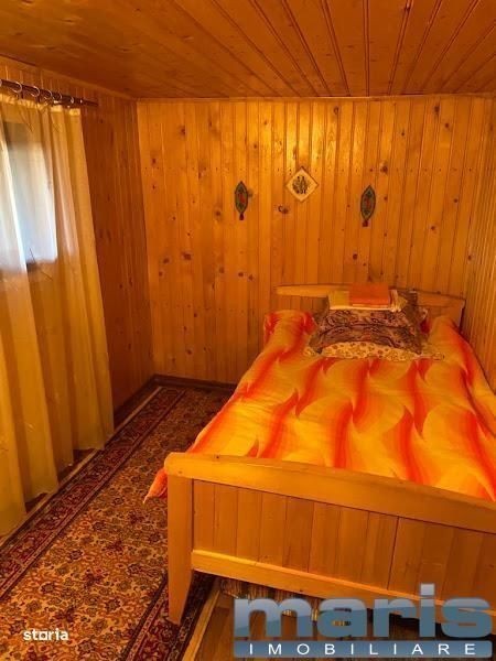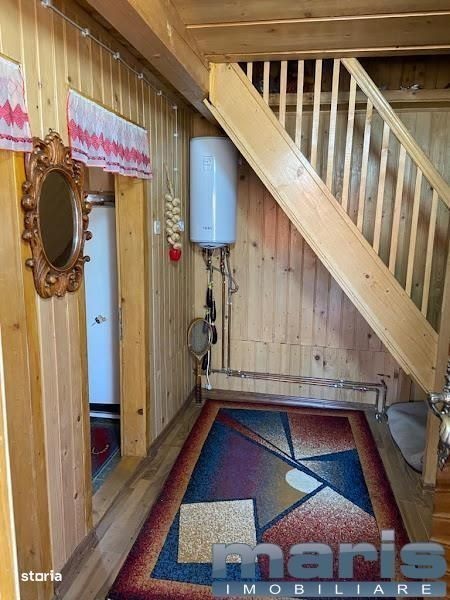Agentia Imobiliara Maris oferim spre vanzare cabana in comuna Deda, Sat Bistra Muresului in zona Lunca Bistrei, tip D+P+M+Pod amplasata pe un teren de 750 mp, zona foarte linistita, langa paraul Bistra. Cabana construita in anul 1996 din rigle de lemn rasinos, la interior : letuita, tenctuita + lambriuri, ferestre din PVC cu geam termopan, fosa, acoperis refacut in 2021 cu tabla Lindab, fundatie din beton, pivnita betonata de 9 mp.