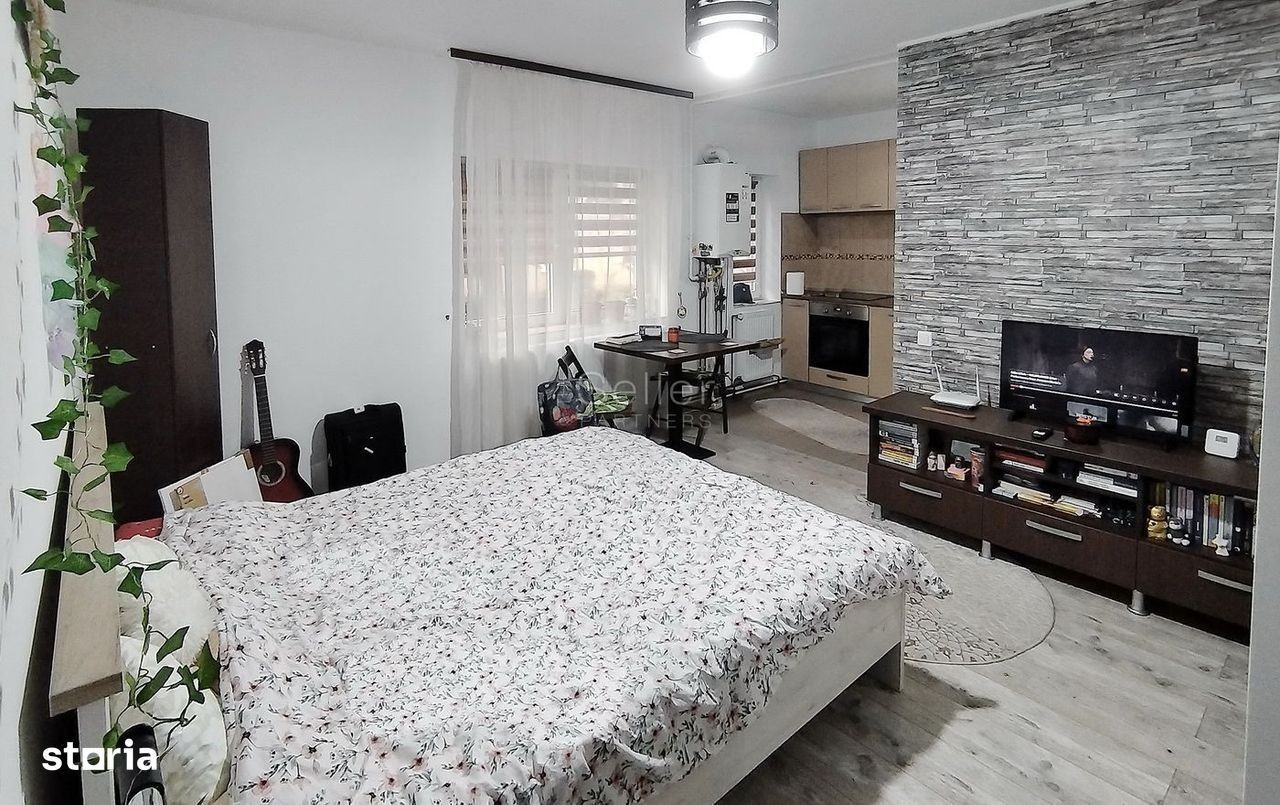 Ati accesat un imobil situat in cartierul Bartolomeu. LOCALIZARE: Acest imobil este situat in zona Bartolomeu, in apropiere de cartierul Avantgarden. Zona mixta de blocuri si case, se regasesc in apropiere shop-uri de cartier, mijloace de transport in comun. COMPARTIMENTARE: Proprietatea este compusa dintr-o camera, structura semidecomandata, avand urmatoarea compartimentare: - Holul de acces; - Camera, care are o suprafata generoasa, detinand zona de dressing; - Bucataria, deschisa, complet mobilata si utilata; - Baia, fiind dotata cu cada si aerisire cu ventilatie. DOTARI: - centrala termica; - tamplarie PVC, cu geam termopan; - Boxa de 3 mp. - Bloc cu lift. Tranzactionarea proprietatii se va face cu mobilierul aferent prezentei ofertari. Se accepta achizitionarea prin credit bancar. IMPREJURIMI: Apartamentul este situat intr-o zona de blocuri, accesul catre acesta fiind unul facil. Accesul auto, pana in zona de centru a orasului, se poate face in cca. 6 minute.