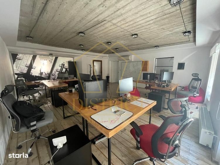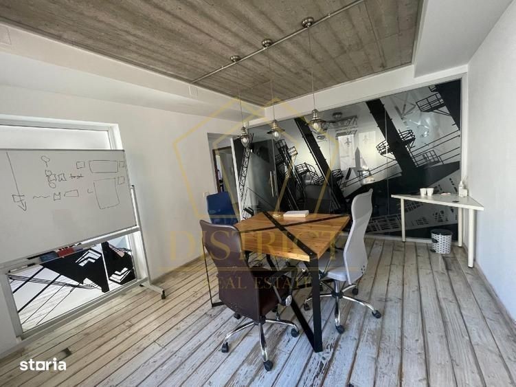 District Real Estate vă propune spre închiriere un spațiu de birouri la etajul 2 al unei clădiri istorice în regim de înălțime P+2+M, situată în Zona Unirii pe strada Florimund Mercy. Clădirea are fațada renovată, iar spațiul se desfășoară pe o suprafață utilă de 109 mp. Spațiul este compartimentat în două zone de lucru și o sală cu pereți de sticlă, potrivită pentru întâlniri, conferințe, birou privat sau zone de relaxare. Accesul este complet separat de activitățile de la parter, printr-o intrare proprie, cu interfon și grilaj metalic ce se încuie pe timp de noapte. Întreaga clădire este SAD, deci toți locatarii sunt persoane juridice, iar toate punctele de interes se află în apropiere. Clădirea are o vechime istorică, este complet renovată, fiind amplasată pe o stradă pietonală cu multe cafenele și restaurante, care leagă direct Piața Unirii de Piața Sf. Gheorghe. Confortul termic se realizează prin centrală proprie și prin 3 aparate de aer condiționat. Compartimentare: - 2 camere pentru birouri - 1 cameră pentru birou/ședințe - 1 spațiu pentru depozitare - 1 baie cu geam Facilități disponibile: • Toate utilitățile (apă, electricitate, încălzire, etc); • Internet prin fibră optică de mare viteză; • Rețea de prize amplasate în tot spațiul. Pretul de inchiriere este de 991 euro + TVA + 2000 euro garantie. Contractul de închiriere se face pe minim 2 ani, dar se preferă o colaborare cât mai îndelungată! Disponibilitate de la 1 noiembrie! Obs: Mobilierul din poze nu este inclus. Pentru mai multe informații și vizionarea proprietății vă stăm la dispoziție.