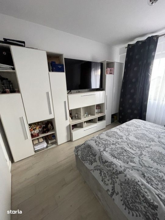 Va propunem spre vanzare un apartament foarte bun la granita dintre Giroc si Chisoda. Etaj 1/3 47 MP utili plus balcon de 4 mp Este foarte bine compartimentat, cu hol de acces, dormitor spatios, baie cu dus si geam, bucatarie deschisa cu livingul. Bucataria este mobilata si partial utilata. Este disponibil imediat si se acepta si credit bancar. Are un balcon acoperit de 4mp si un loc de parcare Blocul este nou, bine izolat, iar incalzirea este in pardoseala cu centrala proprie pe gaz. Va asteptam cu drag la vizionare!