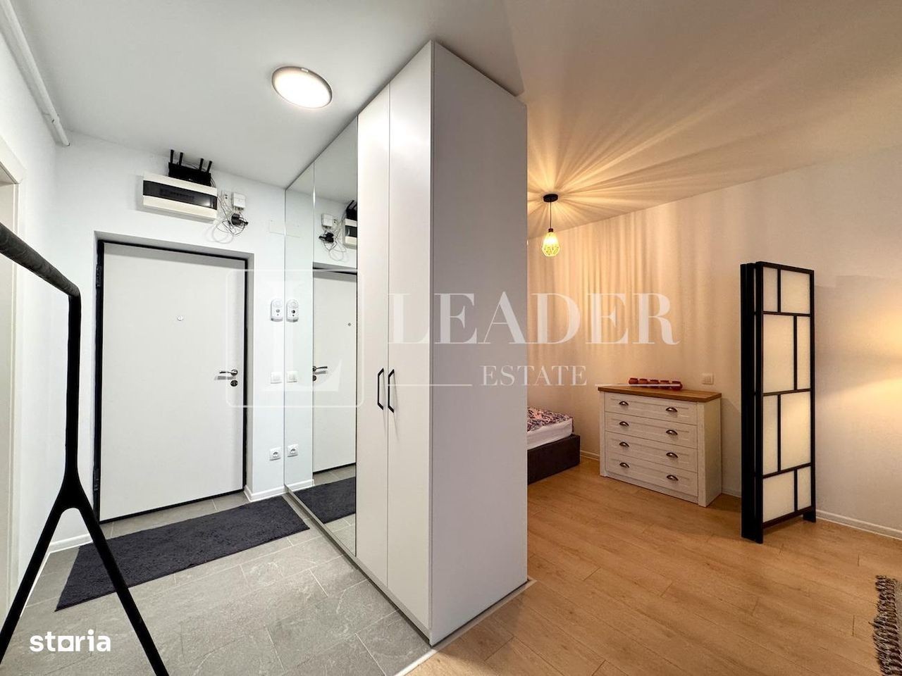 Leader Estate iti prezinta spre inchiriere un studio modern, complet mobilat si utilat, situat la etajul 6 al unui imobil nou (finalizat in 2021), cu vedere panoramica superba si acces la facilitati premium. Studioul are o suprafata utila de 49 mp, terasa generoasa de 12 mp, bucatarie separata si baie cu cada. Este dotat cu centrala proprie in condensatie, incalzire in pardoseala, finisaje de calitate: parchet laminat clasa 32, gresie portelanata, si se afla intr-o stare excelenta. Imobilul este parte dintr-un ansamblu rezidential pazit 24 7, cu acces securizat prin bariera, doua lifturi Schindler, piscina exterioara si parc privat. Zona este linistita si verde tot timpul anului, cu acces rapid catre Mall Colosseum si toate facilitatile urbane din Sector 1. Pretul chiriei este de 500 euro luna. Locul de parcare, situat chiar langa scara, este inclus in acest pret. Proprietatea se poate inchiria si pe un termen mai mic de 12 luni. Daca iti doresti un loc linistit, confortabil si bine conectat, acesta poate fi noul tau acasa. Te asteptam la vizionare! Leader Estate - descopera alaturi de noi locuinta potrivita tie. ID intern: 2091