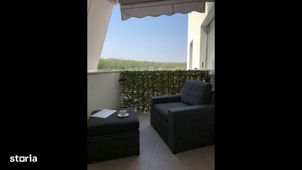 REA1025874 SVN Residentialist Pipera va propune spre inchiriere un apartament modern cu 2 camere in complexul Greenfield Residence, beneficiind de o priveliste spectaculoasa catre Padurea Baneasa. Apartamentul este complet mobilat si utilat, avand o suprafata eficient compartimentata, cu bucatarie inchisa si o terasa generoasa (2x3,5 m), ideala pentru relaxare. Locuinta dispune de centrala proprie, incalzire in pardoseala, masina de spalat, frigider, 2 televizoare, masina de spalat vase, espressor de cafea, aragaz, cuptor, cuptor cu microunde, fier si masa de calcat, aspirator, mobilier birou, mobilier terasa si copertina. Apartamentul ofera multiple spatii de depozitare, inclusiv 2 dressinguri foarte incapatoare. Imobilul este prevazut cu lift si se inchiriaza impreuna cu un loc de parcare. Cheltuielile de intretinere sunt reduse. Plata se face 1 luna chirie + 1 luna garantie. Nu se accepta persoane fumatoare si nu se accepta animale de companie. Complexul Greenfield este una dintre cele mai apreciate zone rezidentiale din nordul Bucurestiului, oferind aer curat, liniste si acces direct la padure. Rezidentii beneficiaza de securitate permanenta, spatii verzi amenajate, locuri de joaca pentru copii, magazine si restaurante in interiorul complexului, dar si conexiuni rapide catre Baneasa Shopping City, Aeroportul Otopeni si centrul orasului. Este alegerea ideala pentru cei care doresc sa locuiasca intr-o zona sigura, curata si exclusivista, aproape de natura, dar cu toate facilitatile moderne la indemana. Avantajele proprietatii includ vedere catre padure, apartament complet mobilat si utilat, terasa generoasa, loc de parcare inclus, finisaje premium si costuri de intretinere reduse. SVN Residentialist va asteapta la vizionare!