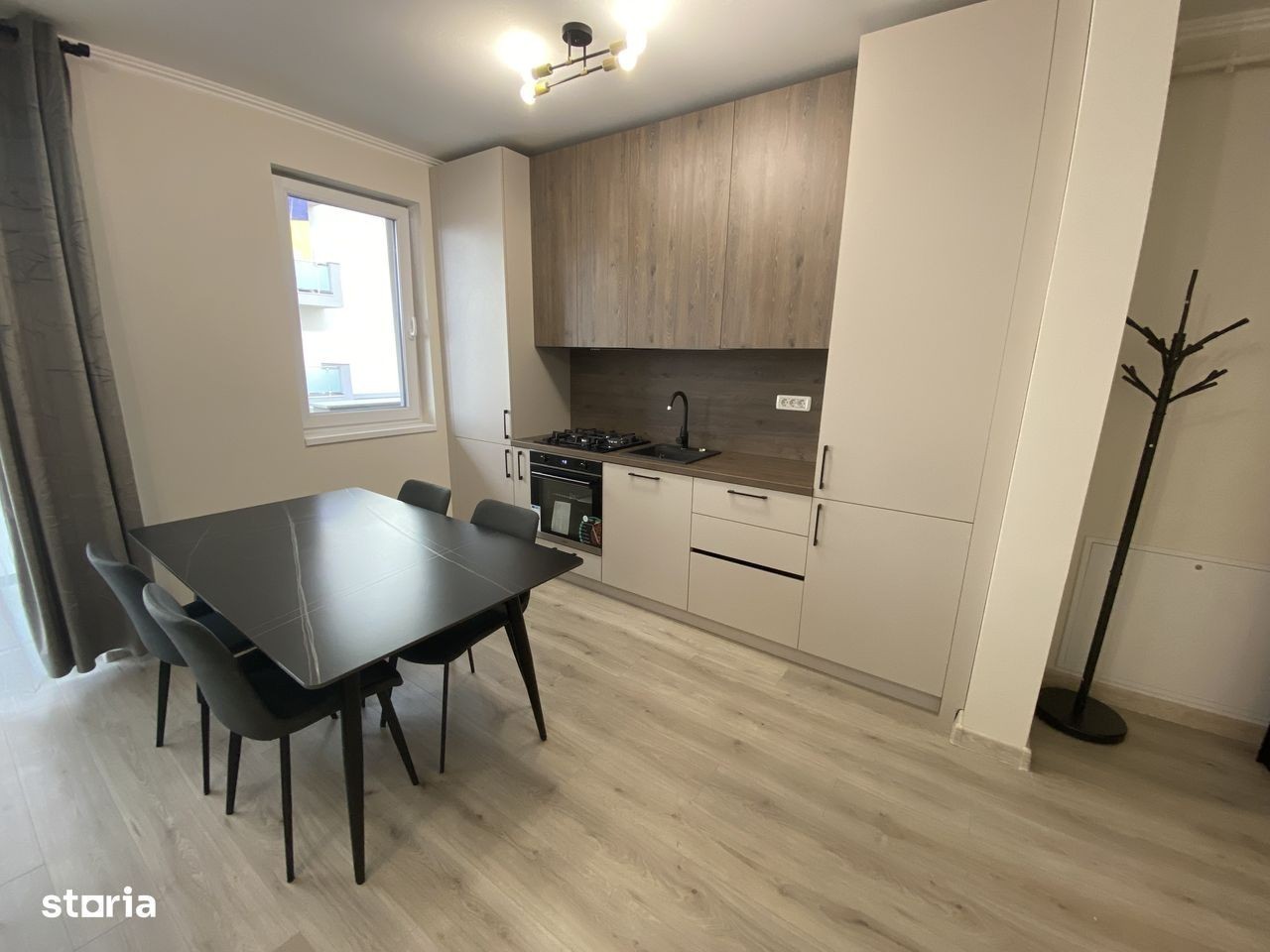 Apartament de inchiriat cu 2 camere la parter. Proprietatea are 47 mp utili + balcon 7 mp si este compartimentat astfel: living cu bucatarie open space, 1 dormitor, hol si baie cu vana. Apartamentul are inclus in pret si 1 loc de parcare privat. Pret 450 euro + garantie.