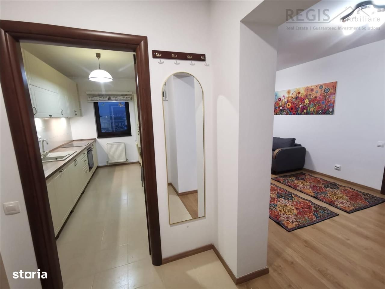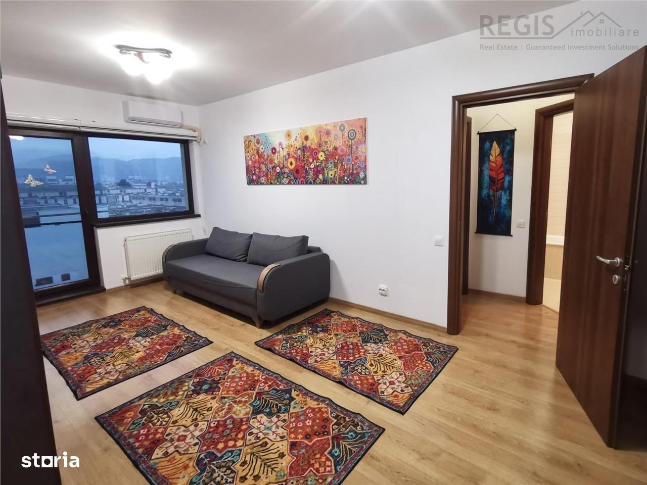 ID: 6099 Regis Imobiliare va propune spre inchiriere un apartament modern cu 2 camere, situat in complexul rezidential Barcelona Residence, zona Astra. Apartamentul este amplasat la etajul 8 din 11, are o suprafata utila de 60 mp si este complet mobilat si utilat, fiind disponibil imediat. Locuinta este ideala pentru cei care cauta confort, lumina naturala, peisaj superb si acces rapid la toate facilitatile zonei - supermarketuri, mijloace de transport, restaurante si spatii verzi. Panorama este deosebita, iar blocul este unul nou, dotat cu lifturi moderne si supraveghere video. Compartimentare: - Living luminos cu iesire pe balcon - vedere superba spre munti - Dormitor spatios cu pat matrimonial si dulap generos - Bucatarie separata, complet echipata: plita, cuptor, frigider, masina de spalat vase - Baie cu cada si masina de spalat rufe - Balcon cu vedere panoramica - Spatii de depozitare bine organizate Facilitati: - Mobilier si electrocasnice noi - Aer conditionat, centrala termica proprie - TV, internet, cablu - Masina de spalat rufe - Acces securizat, interfon, zona imprejmuita - 2 lifturi rapide - Lidl, Kaufland, Carrefour, McDonald's si Easybox langa bloc - Acces facil la mijloace de transport Conditii de inchiriere: - Inchiriere pe termen lung (minim 12 luni) - Garantie: 1000 euro - Chirie: 600 euro luna - Pretul nu este negociabil - Exclus fumatori Pentru mai multe detalii sau pentru a programa o vizionare, va stam la dispozitie. Comisionul agentiei este de 50% + TVA din prima chirie. Andreea, Consultant Imobiliar