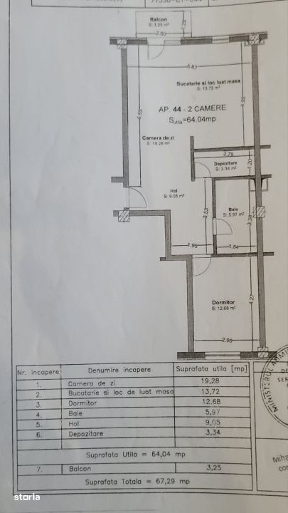 Apartament spatios 64 mp, 2 camere, zona Eroilor