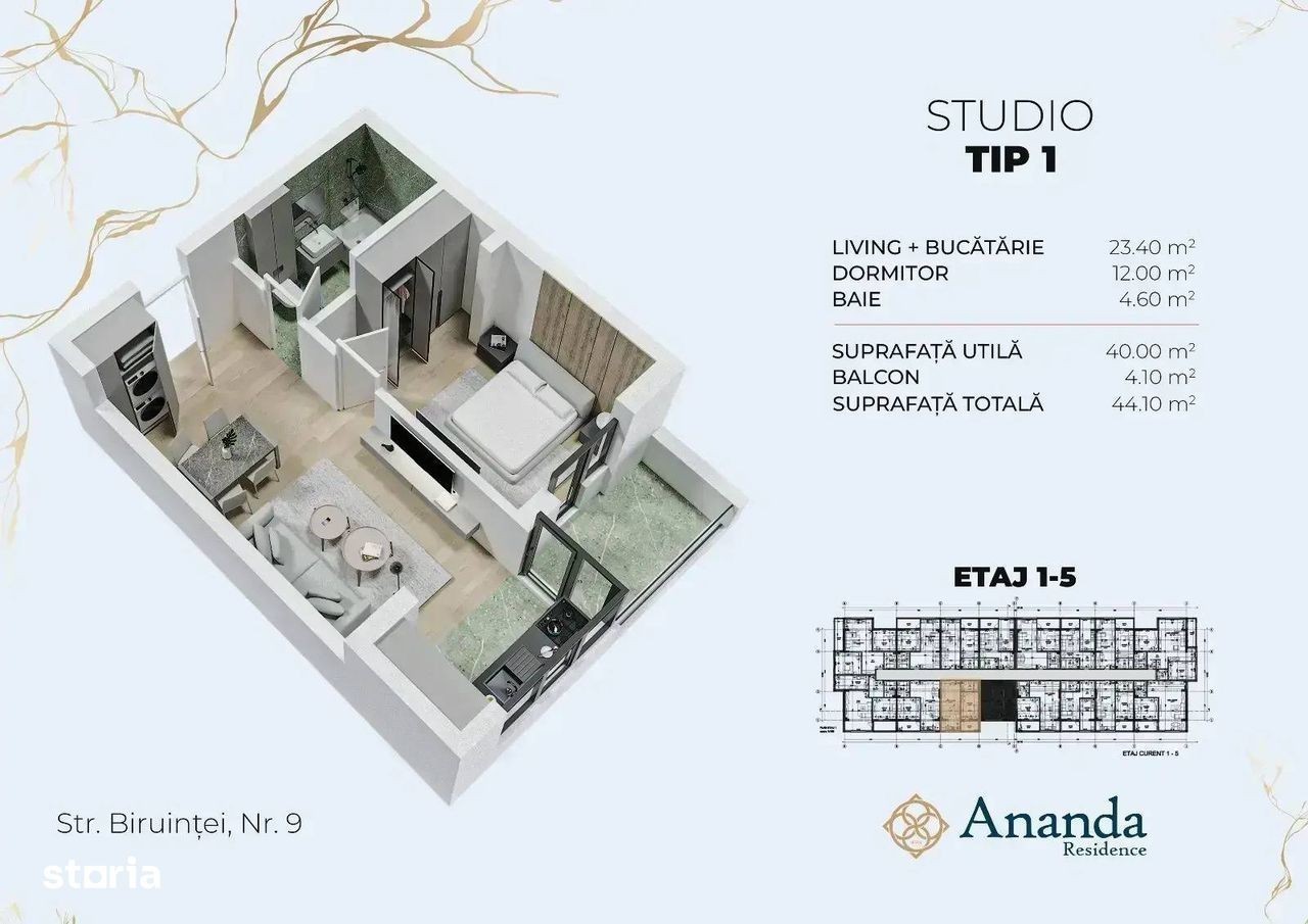 PROMOTIE! Pretul afisat este disponibil pentru PLATA CASH! Vă prezentăm un apartament spațios și bine compartimentat, situat în faza 2 a ansamblului rezidențial Ananda Residence, compus din 5 imobile cu regimul de înălțime 2S+P+5E.