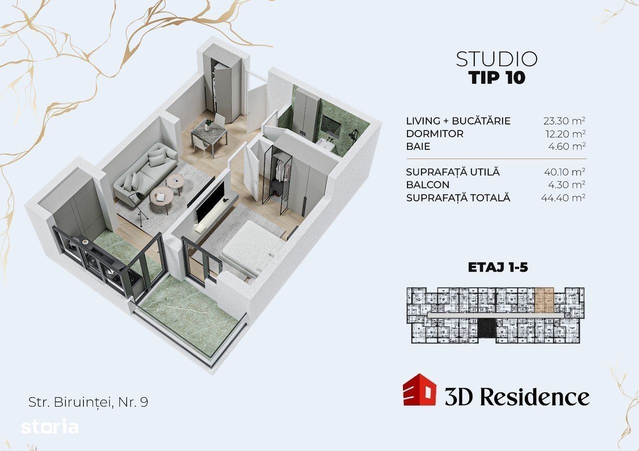 Vânzare apartament 2 camere tip studio - 44,4 mp, aprox. 14-20 minute de Metrou Berceni Se oferă spre vânzare un apartament de 2 camere tip studio, cu o suprafață utilă de 44,4 mp, situat într-un imobil modern cu regim de înălțime P+5.