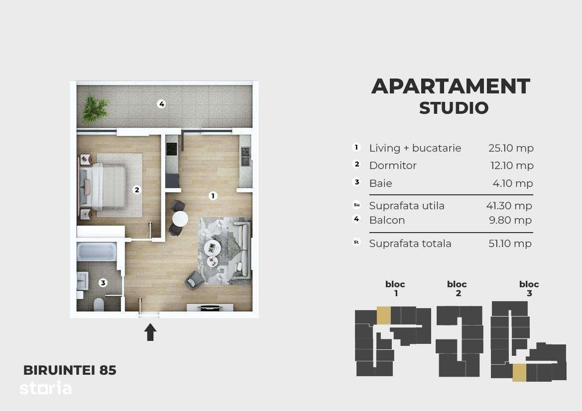 Nou ! Metrou Berceni 300m - 2 camere tip studio - piscina, parc, AC Va oferim spre vanzare garsoniere, studio-uri si apartamente in zona Metrou Berceni, intr-un proiect cu piscina exterioara, parc, parcare subterana si numeroase spatii comerciale, la doar 300m distanta de statia de metrou Berceni.