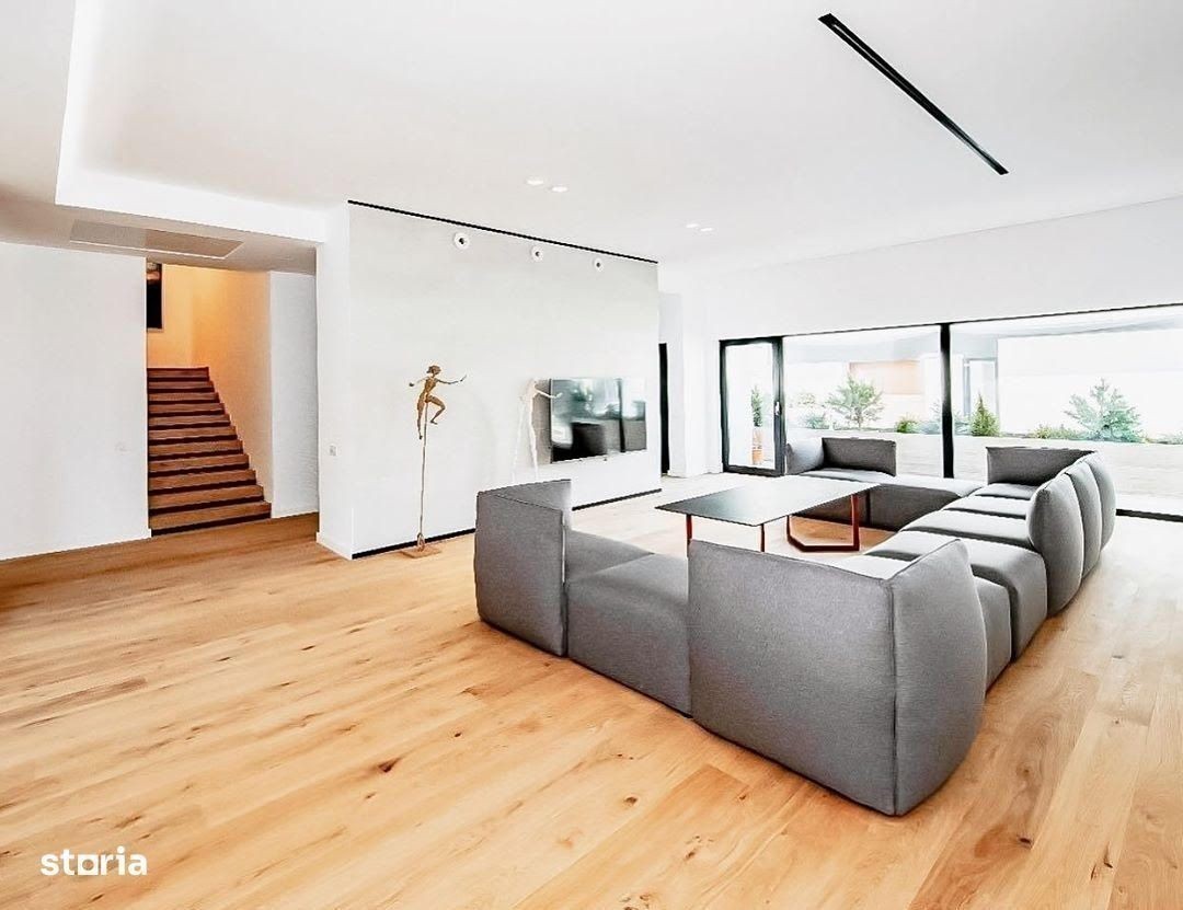 Fara indoiala, cuvintele reprezentative pentru aceasta proprietate sunt: simplitate, naturalete si creativitate! Dupa cum veti putea observa in galeria de fotografii, amenajarea acestui spatiu este spectaculoasa, ultra-moderna si surprinzatoare pentru simplul fapt ca termenul care defineste modernitatea este intr-o continua schimbare, acesta evoluand odata cu noile tehnologii si concepte din constructii, peisagistica si arhitectura. Construita in 2017, vila este in ton cu toate trendurile in materie de design interior si exterior, conceputa pentru a scoate in evidenta rafinamentul si bunul-gust omniprezent in interior, dat prin elementele simple de design foarte bine gandite si organizate. Cromatica, preponderent neutra, cu accente subtile de culoare ce se strecoara printre tonurile dominante neutre accentuate de albul impecabil al peretilor, ajuta la amplificarea spatiilor interioare, Elementele de mobilier sunt foarte bine alese si reflecta un stil unitar, concentrat pe functionalitate. Fara indoiala ca lumina naturala este cheia acestei amenajari, fie ca vorbim de living-room, bucatarie, dormitoare sau holuri, suprafetele vitrate sunt un atu intens explorat pentru a beneficia de aceasta amplificare a spatialitatii. Amenajarea proprietatii a avut ca scop principal crearea unui spatiu simplu, unitar, unde accentele doar "ghideaza" ochiul si marcheaza principalele zone de activitate. Acelasi stil se continua si in dormitoare, unde suprafetele superioare si laterale ale mobilierului, inclusiv ale patului, sunt albe, cu scopul de a fuziona cu cromatica peretilor. Bucataria, are un mobilier minimalist cu linii geometrice clar definite si pastreaza aceeasi cromatica neutra. Desfasurata pe o suprafata utila de 285 metri patrati, proprietatea de 7 camere face parte dintr-un top foarte restrans al proprietatilor din zona si impresioneaza prin aspectul sau futuristic. Iata cum un proiect gandit in detaliu pentru ca fiecare functiune sa fie bine pusa in valoare si sa comunice coerent cu celelalte zone ale casei poate aduce beneficii familiei ce va urma sa locuiasca aici. Certificat Energetic - Clasa A. Proprietatea dispune de garaj si un loc de parcare.