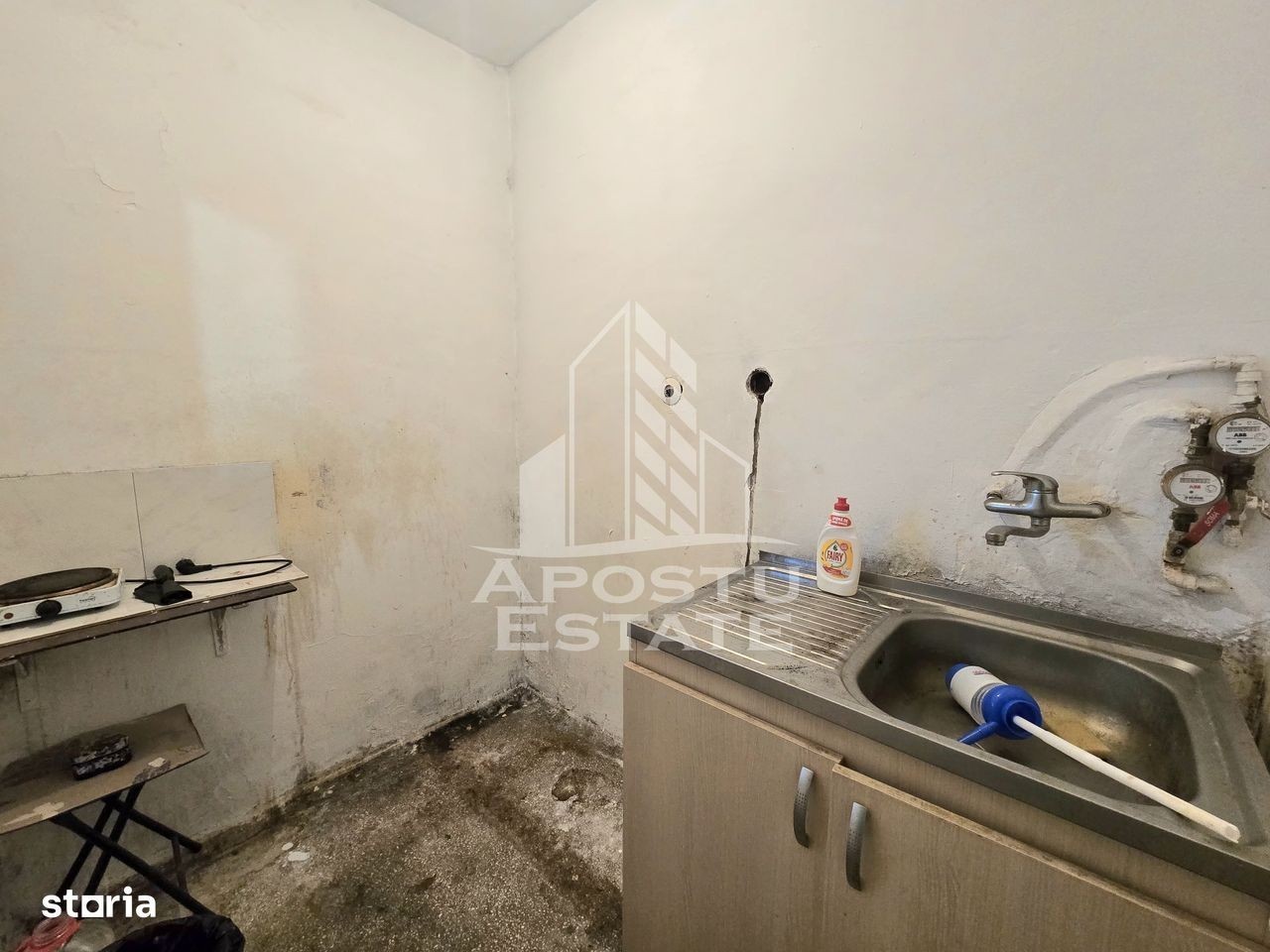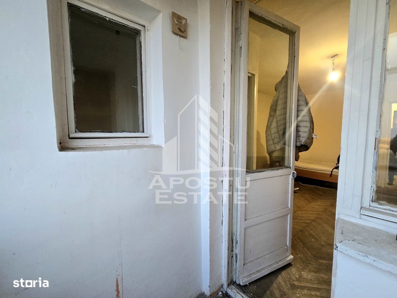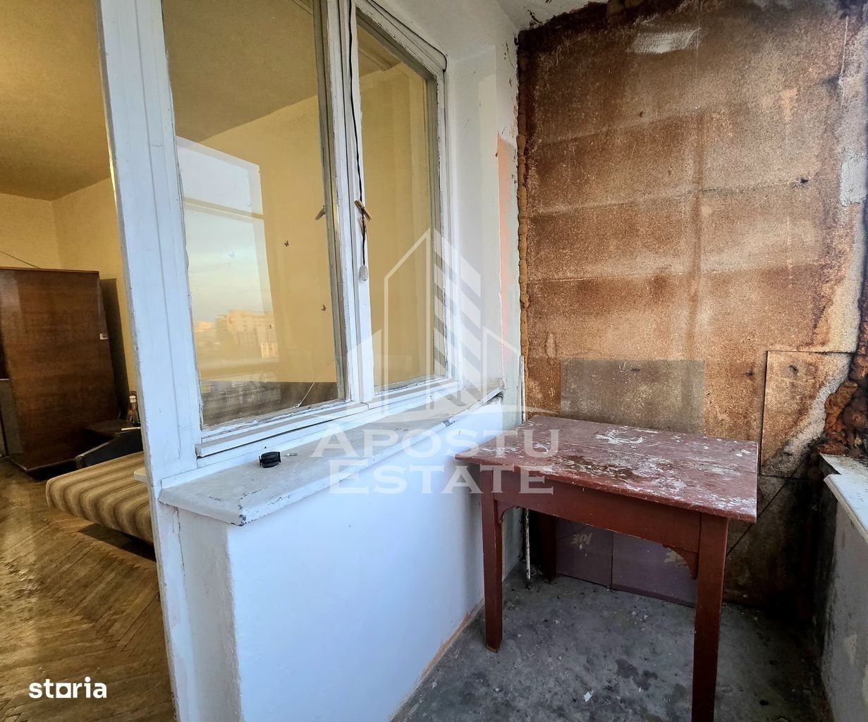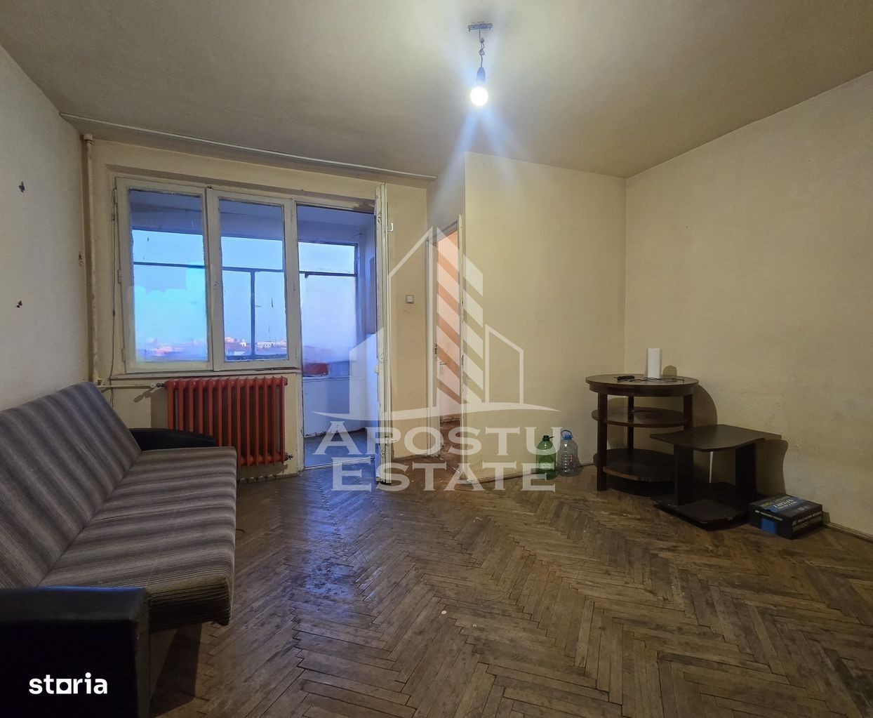 APOSTU ESTATE va ofera spre vanzare un apartament cu o camera, ce necesita renovare completa, situat la etajul 7 din 10 al unui bloc ce dispune de doua lifturi, amplasat in zona Circumvalatiunii. Apartamentul este ideal ca atat ca si investitie, cat si ca locuinta, aflandu-se la doar cateva minute fata de statia de autobuz, Kaufland, parc, scoala sau fata de sala de sport. Apartamentul are o suprafata aproximativa de 34 mp, fiind compartimentat astfel: - hol de acces - baie prevazuta cu cada - camera principala spatioasa - bucatarie separata - balcon cu vedere panoramica Apartamentul necesita renovare completa. Potizie excelenta, etaj intermediar si compartimentare buna. Confortul termic este realizat prin termoficare. Oferim consultanta bancara prin colaboratorii nostri pentru alegerea celui mai potrivit credit. Disponibil imediat! Va asteptam cu drag la o vizionare chiar astazi!