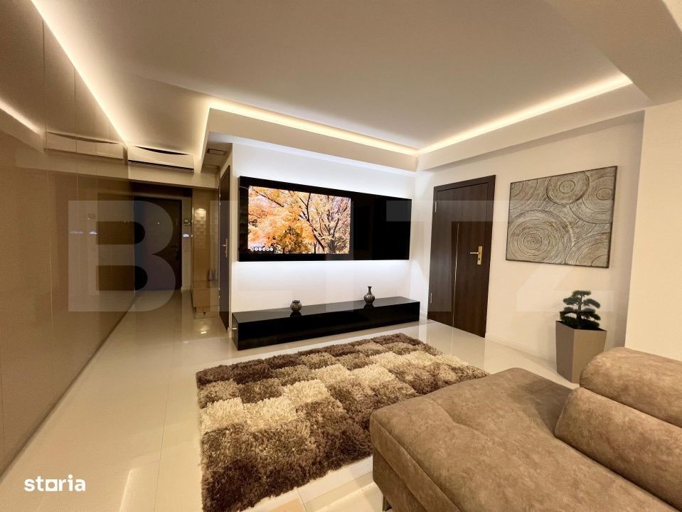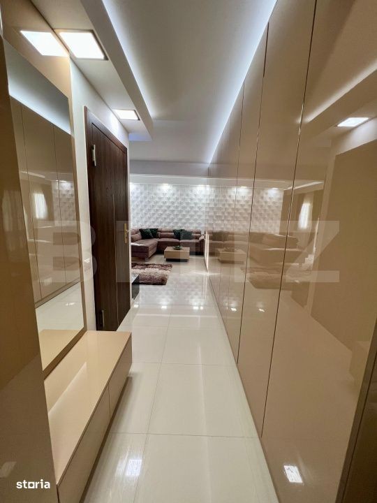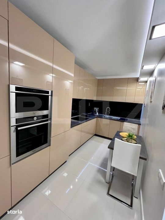 Blitz va propune să descoperiți un apartament deosebit, situat în cartierul Tudor, la etajul 4 al unui imobil nou, cu lift și acces securizat. Un spațiu creat pentru confort, stil și rafinament - perfect pentru cei care apreciază calitatea și designul contemporan. Locuința impresionează încă de la intrare prin jocul subtil al luminilor ambientale și prin paleta cromatică rafinată, bazată pe tonuri calde de bej, alb perlat și accente naturale. Compartimentare inteligentă și spațioasă: -Hol de acces generos, cu spații de depozitare elegante; -Living luminos și aerisit, decorat cu un perete 3D spectaculos, colțar premium și iluminat ambiental care oferă o atmosferă relaxantă; -Bucătărie modernă, complet mobilată și utilată, cu electrocasnice încorporate și finisaje lucioase în tonuri calde de bej și negru; -Dormitor confortabil, gândit pentru relaxare și intimitate, cu acces direct către terasă; -Baie elegantă, finisată integral cu mozaic de marmură, dotată cu cadă, baterii Grohe și iluminare ambientală; -Terasă dublă, cu acces din două camere, ideală pentru momentele de relaxare la cafeaua de dimineață sau serile liniștite de vară. Apartamentul se vinde exact ca în fotografii, complet mobilat și utilat, iar în preț este inclus și un loc de parcare privat, cu acces securizat prin barieră automată. Un spațiu pentru cei care iubesc confortul, liniștea și bunul gust. Vă așteptăm cu drag la vizionare, pentru a descoperi personal eleganța și echilibrul acestei locuințe deosebite.