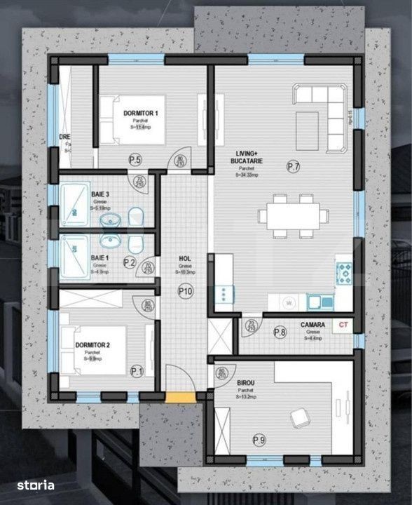 Blitz vă propune spre vânzare o casă individuală care îmbină rafinamentul designului contemporan cu sentimentul autentic de acasă. Parte dintr-un ansamblu rezidențial nou, bine organizat, proprietatea oferă intimitate, siguranță și o atmosferă plăcută, ideală pentru o familie care își dorește confort și echilibru între viața urbană și liniștea unei comunități retrase. Casa are o suprafață construită de 120,2 mp, amplasată pe un teren plan de 500 mp - suficient pentru a crea un spațiu verde, o terasă de relaxare sau o mică grădină de familie. Compartimentarea a fost gândită pentru a oferi funcționalitate și armonie: un hol generos la intrare cu spațiu de depozitare, un living luminos cu bucătărie open-space, o debara practică, trei dormitoare, două băi și un dressing bine poziționat. La interior, locuința este pregătită să primească personalitatea viitorilor proprietari. Pereții sunt finisați, sistemul de încălzire în pardoseală oferă confort termic constant, iar termoizolația eficientă contribuie la un consum redus de energie. Toate instalațiile electrice, sanitare și termice sunt realizate, iar casa dispune de centrală termică pe gaz, apă, curent, internet - totul pentru o locuire comodă și sigură. La exterior, fațada elegantă este îmbrăcată într-un termosistem de calitate, completat de piatră naturală, garduri perimetrale, porți de acces auto și pietonal, alei pavate și trotuare amenajate cu atenție. Această proprietate se adresează celor care caută o casă luminoasă, eficientă și primitoare, într-un ansamblu modern unde confortul și liniștea se întâlnesc firesc. Un spațiu care nu oferă doar locuire, ci un nou început - pentru oameni care știu să aprecieze echilibrul, detaliul și frumusețea simplității. Pentru o experiență completă vă invităm la o vizionare!