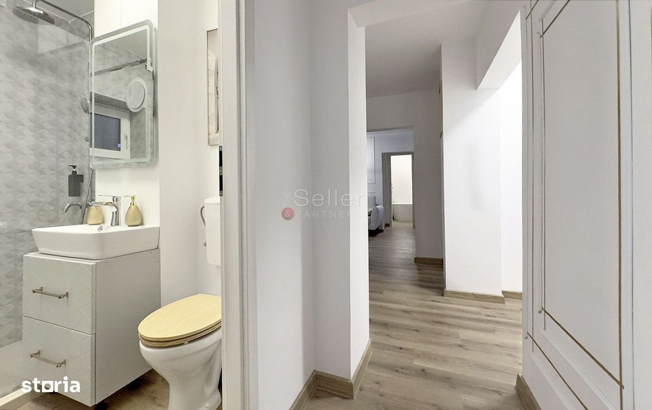 LOCALIZARE: Acest imobil este situat in zona Centrul Civic, in imediata apropiere a AFI Mall, zona beneficiind de clinici stomatologice, magazine, saloane de infrumusetare, spatii verzi, scoli si gradinite. COMPARTIMENTARE: - Holul 1 de acces ce ofera deschidere catre doua dormitoare, zona de zi, baia 1 si bucatarie; - Zona de zi, cu deschidere catre cel de al doilea hol; - Holul 2 cu acces catre al treilea dormitor si baia 2; - Bucataria, inchisa, fiind mobilata si dotata integral, cu acces la balcon; - Dormitorul matrimonial, cu o suprafata generoasa si acces la baia 2; - Celelalte doua dormitoare, beneficiaza de multa lumina naturala; - Baile, una dintre ele fiind dotata cu cada si aerisire naturala, iar cealalta cu dus; DOTARI: - centrala termica; - tamplarie PVC, cu geam termopan; - usa metalica; - loc de parcare concesionat; - boxa; - renovat integral 2024. Imobilul dispune de o suprafata generoasa si o compartimentare eficienta, beneficiind de lumina naturala pe tot parcursul zilei si vedere pe doua laturi. IMPREJURIMI: Imobilul este situat intr-o zona de blocuri, accesul auto, pana in zona de centru a orasului, facandu-se in cca. 6 minute. ATRACTII ZONA: Magazine, restaurante, parcuri, școli, spitale. ACCESIBILITATE: Transport public în apropiere. COMISION INTERMEDIRE: 50% + TVA NOTA: Locatorul nu accepta animale de companie. Informatiile prezentate reflecta situatia reala a proprietatii, fara a constitui o oferta contractuala. Aceste date au fost obtinute verbal, de la titularul de drept al imobilului. Structura acestei prezentari nu poate fi reprodusa, fara acordul scris al The Seller and Partners.