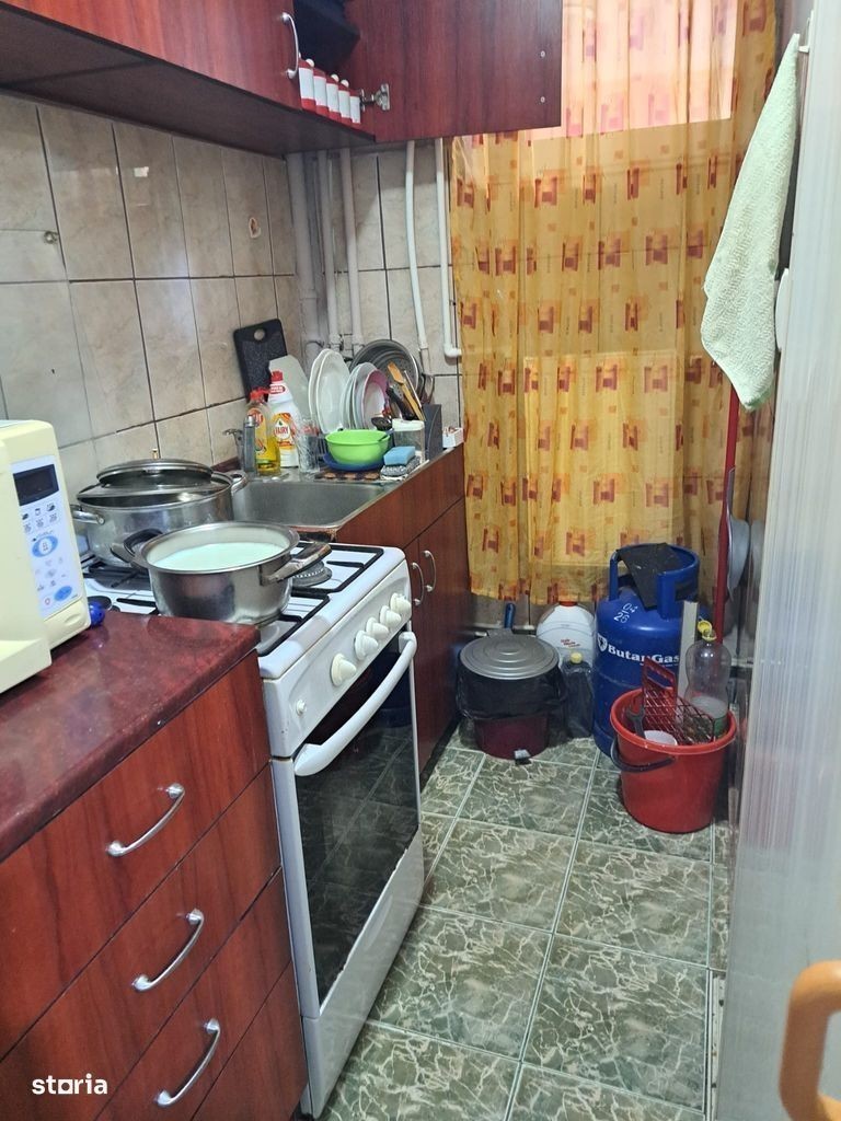 Apartament cu 2 camere tip L situat la parter în Rogerius cu ferestre termopan, gresie, faianță, ușă metalica, usi interioare schimbate, se vinde mobilat, utilat.