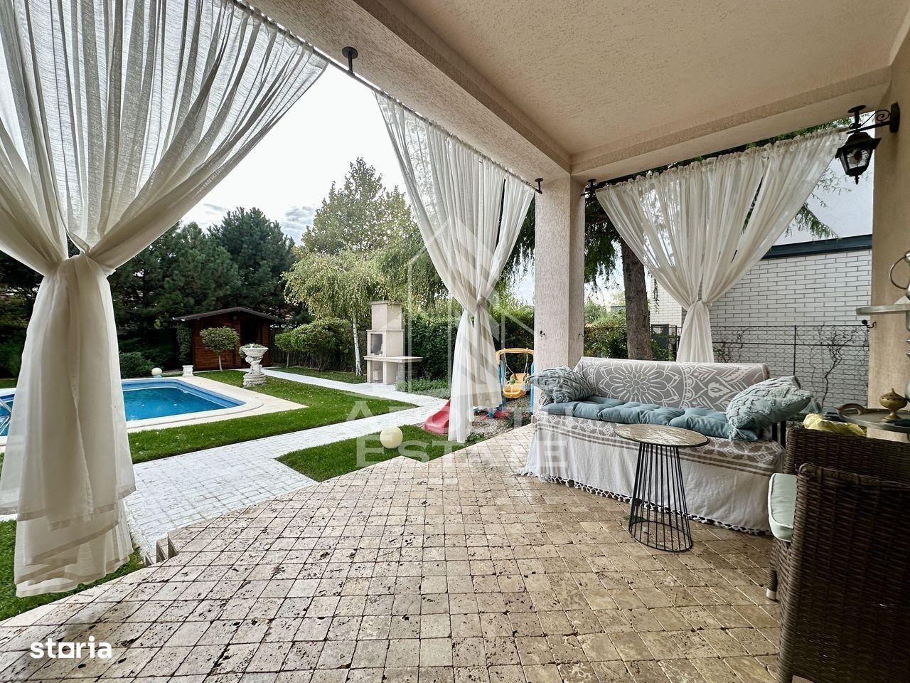 Apostu Estate va prezinta spre vanzare, fara comision pentru cumparator, o adevarata bijuterie imobiliara situata in cea mai dorita zona din Dumbravita, in apropiere de Kaufland. Aceasta casa construita in 2009 combina cu maiestrie stilul modern cu accente clasice, oferindu-va un spatiu generos de 280 mp construiți, cu un regim de inaltime Parter+Mansarda inalta, amplasata pe un teren de 646 mp. Cu feroneria din sticla generos dimensionata, casa va va incanta cu lumina naturala. Compartimentarea eficienta ofera confortul dorit: La parter, veti gasi: Un hol de acces elegant; O bucatarie inchisa, ideala pentru gatit; Un living primitor, perfect pentru momentele de relaxare; O zona de dining confortabila; O baie moderna; Un birou/dormitor, dupa preferinte; Garaj; O terasa generoasa, ideala pentru serile de vara; La etaj, va asteapta: Un dormitor matrimonial cu baie proprie si terasa; Doua camere luminoase; Un dressing spatios; O baie dotata cu dus; Curtea este un adevarat refugiu, amenajata cu vegetatie matura, o piscina pentru zilele calde si un loc de gratar perfect pentru petreceri cu prietenii si familia. Casa este complet utilata, dispunand de toate utilitatile necesare, inclusiv un foraj de 140 de metri adancime si un sistem de dedurizare a apei. Casa se vinde mobilata si utilata. Va invitam cu drag la o vizionare!