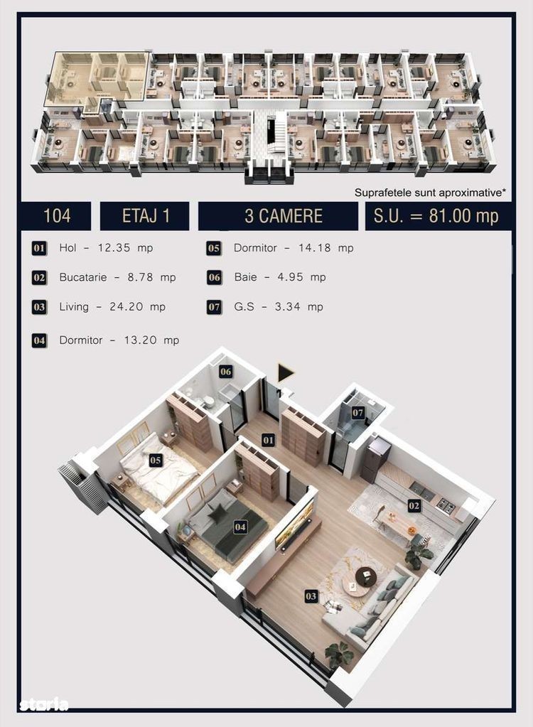 Descoperă confortul unui apartament modern de 3 camere într-un complex sigur și verde, aproape de București, cu living și bucătărie deschisă, 2 dormitoare, 2 băi și hol. Spațiu generos și lumină naturală prin geamurile panoramice Salamander tripan. Dotări premium: încălzire prin pardoseală cu automatizare, aer condiționat, tavane Barrisol, feronerie ROTO NX și fațadă ventilată tip Bond.