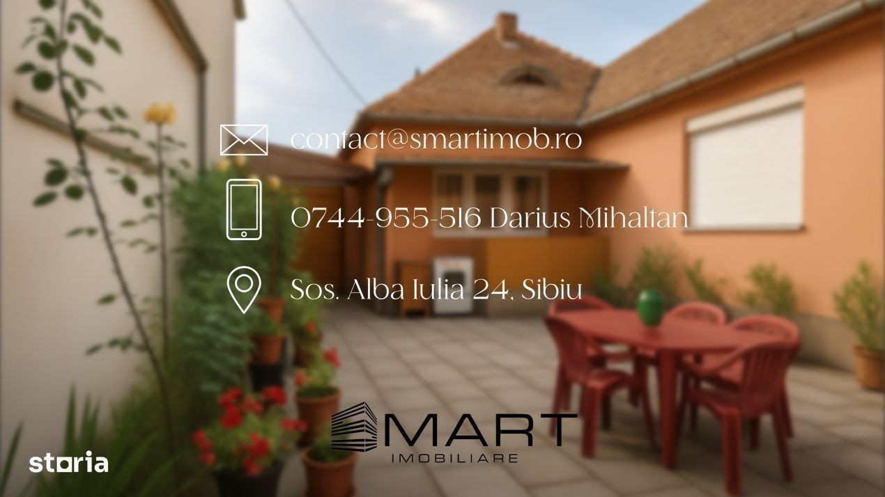 Smart Imobiliare vă propune spre închiriere o proprietate situată într-un cartier rezidențial de case, la doar 1 km de Piața Cibin, ce oferă intimitate și un ambient superior, dar și acces rapid la centrul orașului și la toate punctele de interes. Proprietatea este compusă din: -Casă spațioasă - 80 mp: 2 camere mari decomandate, bucătărie separată, baie modernă și hol generos, și -Curte comună îngrijită, cu dale de piatra, flori și arbuști - spațiu plăcut pentru cafeaua de dimineață sau o pauză la aer. De ce e specială această proprietate: -Flexibilitate excelentă a spațiului: garsoniera poate funcționa natural ca birou/recepție pentru o micro-afacere cu flux clar pentru clienți, în timp ce casa rămâne zona de locuit. -Confort pentru generații aproape, dar cu intimitate: părinții în casă, iar bunicii sau adolescentul/tânărul adult în garsonieră - fiecare cu spațiul lui. -Primire elegantă a musafirilor: garsoniera este perfectă pentru familia și prietenii care vin în vizită. Pentru vizionări, sunați și menționați ID-ul P17938.