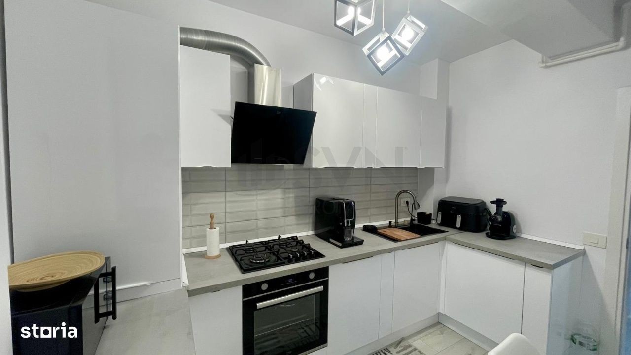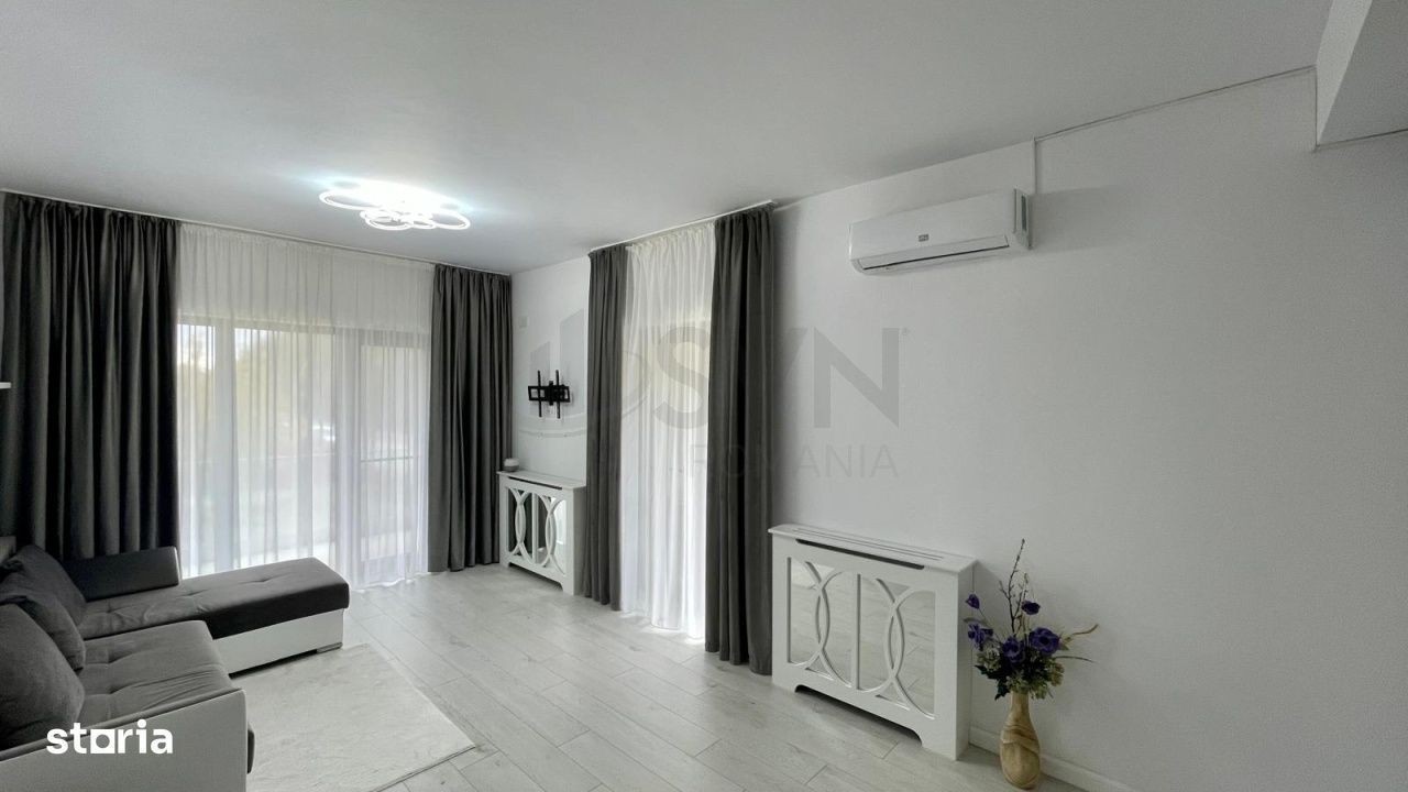 REA1025997 SVN Residentialist va propune spre achizitie un apartament spatios si elegant de 2 camere, in apropiere de Scoala Americana, Pipera. Caracteristici: - Etaj 1 din 5, constructie din beton si BCA (fara rigips), cu finisaje premium si centrala proprie. -Suprafata utila 54,34 mp + balcon in forma de L de 28,10 mp, cu vedere superba spre padure - suprafata totala 82,44 mp. -Apartament decomandat, 2 camere, bucatarie inchisa complet mobilata si utilata (electrocasnice incorporabile Hotpoint, mobila MDF lucios cu garantie 10 ani). -Living generos de 25,6 mp, cu dressing mare, coltar extensibil si aer conditionat 12.000 BTU. -Dormitor matrimonial elegant, complet mobilat, cu TV Philips Ambilight. -Baie moderna cu cada si finisaje de calitate. Se vinde complet mobilat si utilat (cu exceptia filtrului de cafea, aparatului pentru suc, a purificatorului de aer, unui dulap din balcon si a balansoarului.) Disponibil imediat - ideal pentru locuire sau investitie in zona premium Pipera. Pentru mai multe detalii si pentru a stabili o vizionare, va stam la dispozitie!
