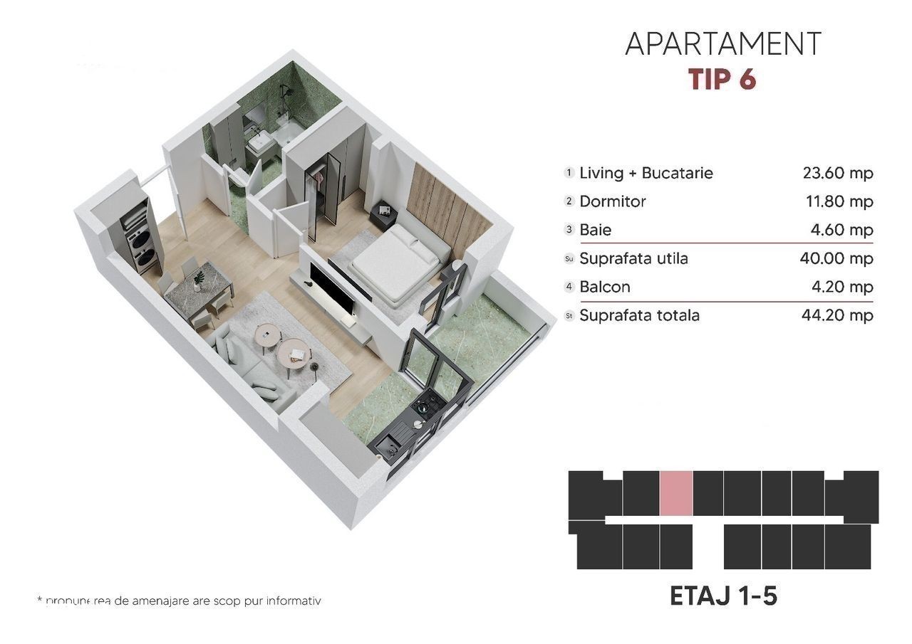 Apartament 2 camere decomandat,bloc (in constructie) cu regim de inaltime S+P+5 etaje,dispune de dotari moderne cu finisaje premium,obiecte sanitare incluse, centrala proprie,incalzire pardoseala, contorizare individuala a utilitatilor Dezvoltatorul permite viitorului proprietar sa intervina asupra felului in care se va finisa apartamentul, oferind acestuia posibilitatea de a-si alege finisajele (gresia, faianta, parchetul, usile de interior)sunt incluse in pretul apartamentului.