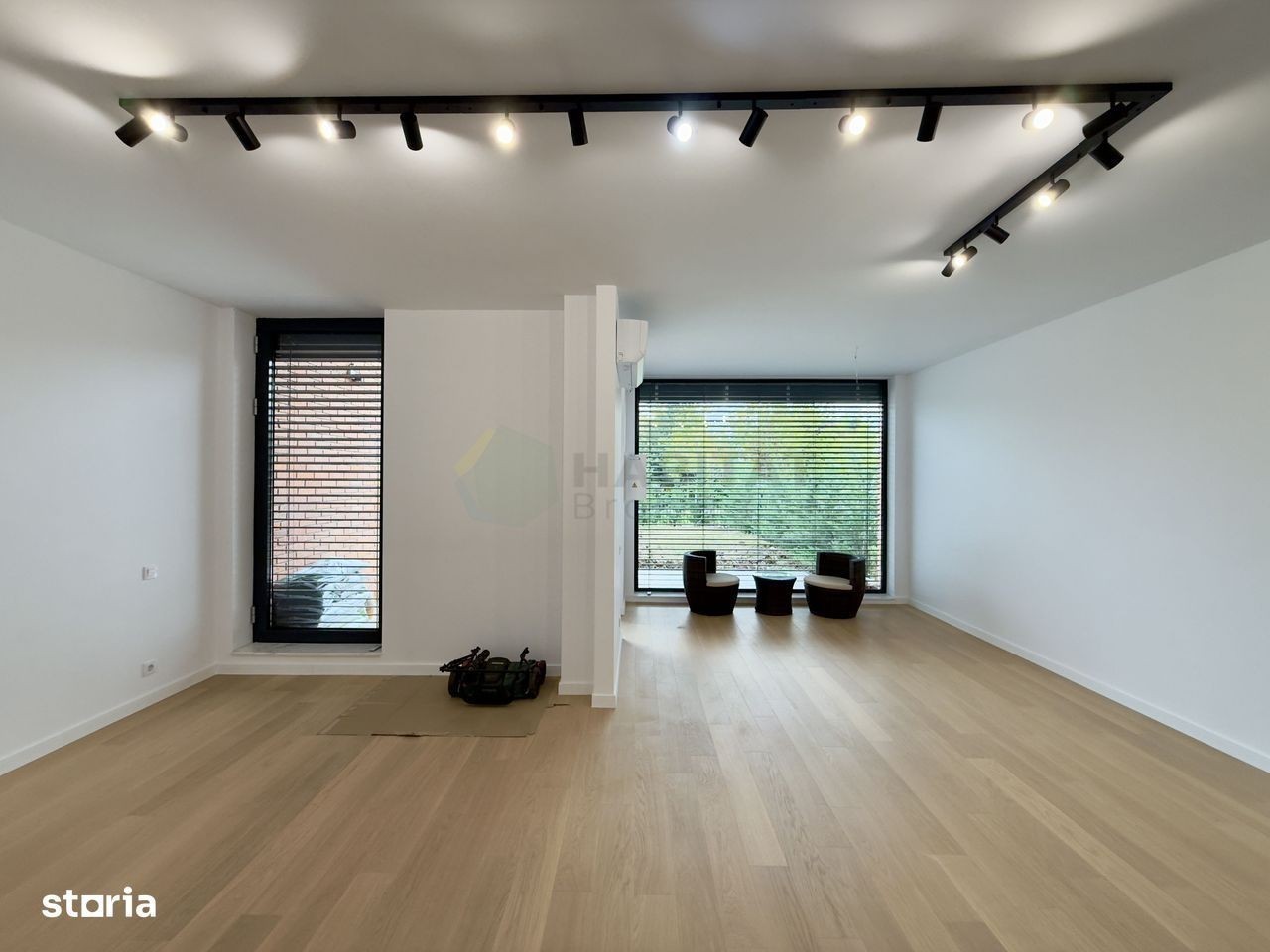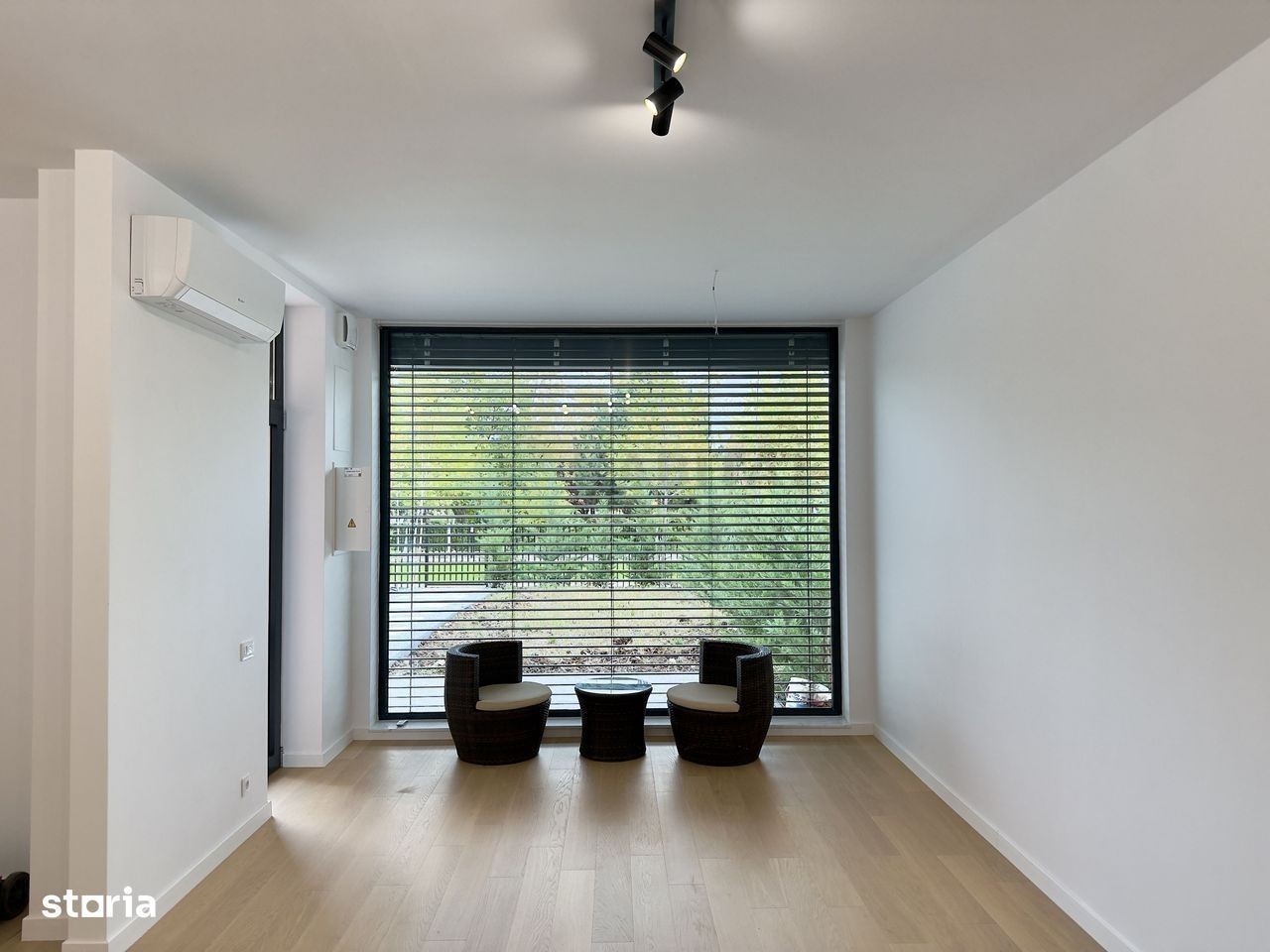 Vila urbana este situată într-o zonă liniștită și verde, aproape de parc, în cadrul proiectului Herăstrău Apartments Parc. Este doar cu bucătăria mobilată, fiind ideală pentru birouri sau firme. Configurație: • Parter: living spațios, bucătărie deschisă, zonă de dining, baie cu duș • Etaj 1: două dormitoare, baie cu cadă, terasă pentru relaxare Facilități: • Aer condiționat în toate camerele • Încălzire centralizată și încălzire în pardoseală • Curte proprie de 100 mp • Contorizare individuală a utilităților. • Jaluzele exterioare electrice •. Un loc de parcare inclus în preț Avantaje: • Zonă liniștită, aproape de parc • Acces rapid către Pipera, școli și magazine • Ideală pentru sediu de firmă Se dorește contract pe termen lung. Contactați-ne pentru mai multe detalii sau pentru o vizionare.