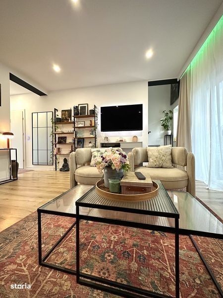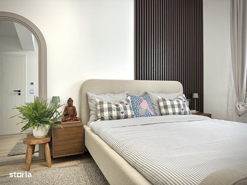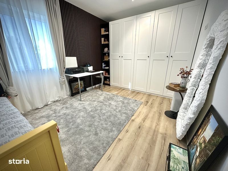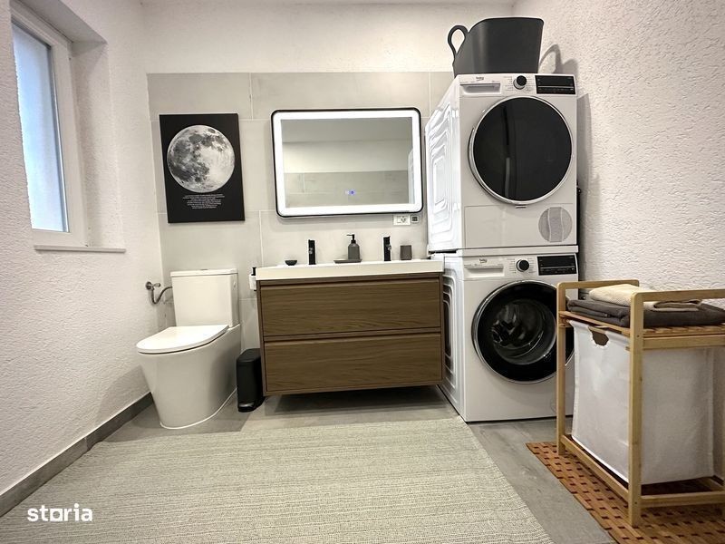 Proprietar vand Duplex complet mobilat si utilat cu etaj, in Covaci (la 5 minute de Dumbravita) finalizat in august 2024. Suprafata utila 74 mp, 2 dormitoare, 2 bai, living si bucatarie open space, depozitare sub scara, suprafata totala teren 199 mp. Casa Smart, toate intrerupatoarele (iluminatul), electrocasnicele (masina de spalat vase, rufe, uscatorul, cuptorul), aparatul de aer conditionat, sistemul de supraveghere video si interfonul marca Eufy se pot accesa prin aplicatie, in living este montata o camera de supraveghere tot marca Eufy care se poate accesa din aplicatie pt siguranta sporita. Banda led montata la exterior pe toata lungimea casei pentru iluminat nocturn. Suprafete interioare: Bucatarie/Living: 31,76 mp Hol: 3,75 mp Baie parter: 2,55 mp Depozitare: 2 mp Dormitor matrimonial: 12,7 mp Dormitor oaspeti: 12,7 mp Baie etaj: 6,85 mp Hol etaj: 1,7 mp Parchet laminat, gresie si faianta Tempini 60x120 Italia, incalzire in pardoseala (termostat wi-fi, se poate seta temperatura din aplicatie), mobilier bucatarie si hol executate la comanda pt a profita la maxim de spatiu (mdf vopsit, feronerie Bloom), blatul mobilierul de bucatarie este Granit Typhoon. Electrocasnicele au inca 4 ani garantie (masina de spalat vase, rufe si uscatorul sunt Beko gama premium, frigiderul, cuptorul de gatit si cel cu microunde sunt Haier, plita cu hota inclusa este Bosch, spoturi Philips, intrerupatoare cu touch si Wifi sunt Sonoff cu ambient light si vibratie (controlabile si din aplicatie), totul este ascuns: nu sunt cabluri insiruite prin casa. Pod izolat cu polistiren grafitat, se poate depozita pe toata suprafata lui. Curte: Pavaj, 3 locuri de parcare, Focar, Leagan, Iaz (pond) cu sistem de recirculare a apei, Pergola bioclimatica prevazuta cu mobilier si iluminat, casuta depozitare prevazuta cu iluminat si prize, sistem irigat cu foraj si pompa, aspersoare, sistem picurare, gazon si copacei decorativi. Pret: 175.000€