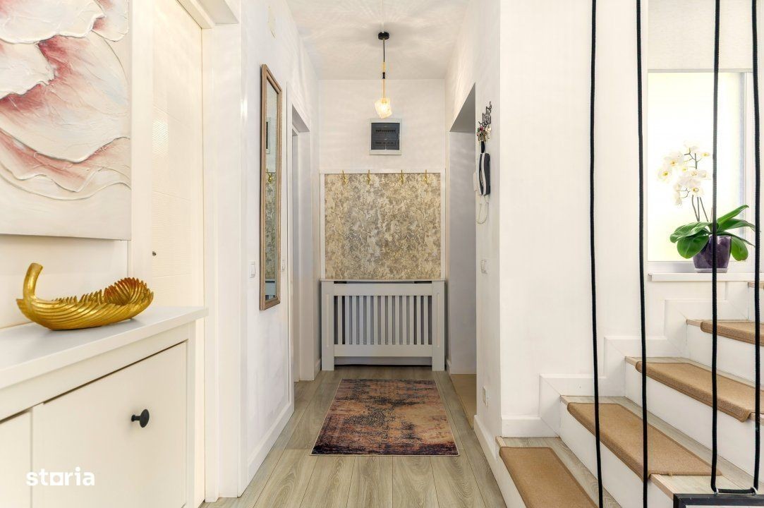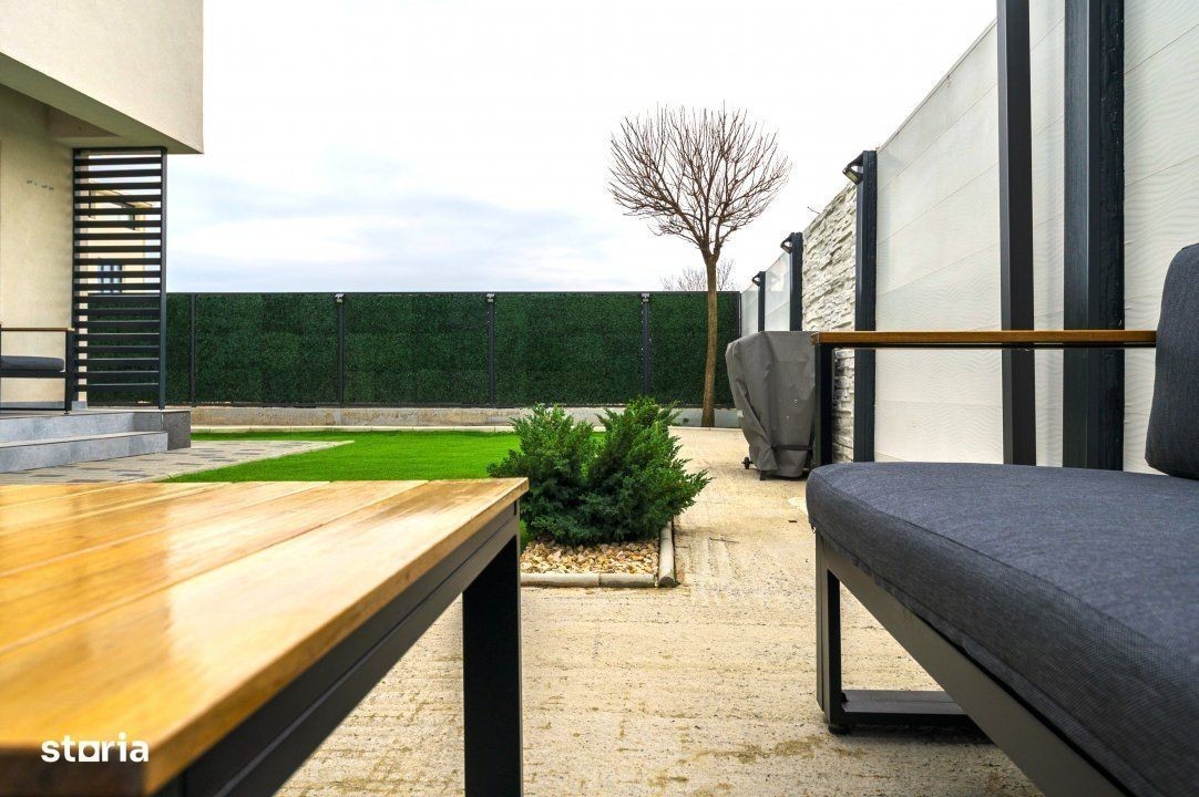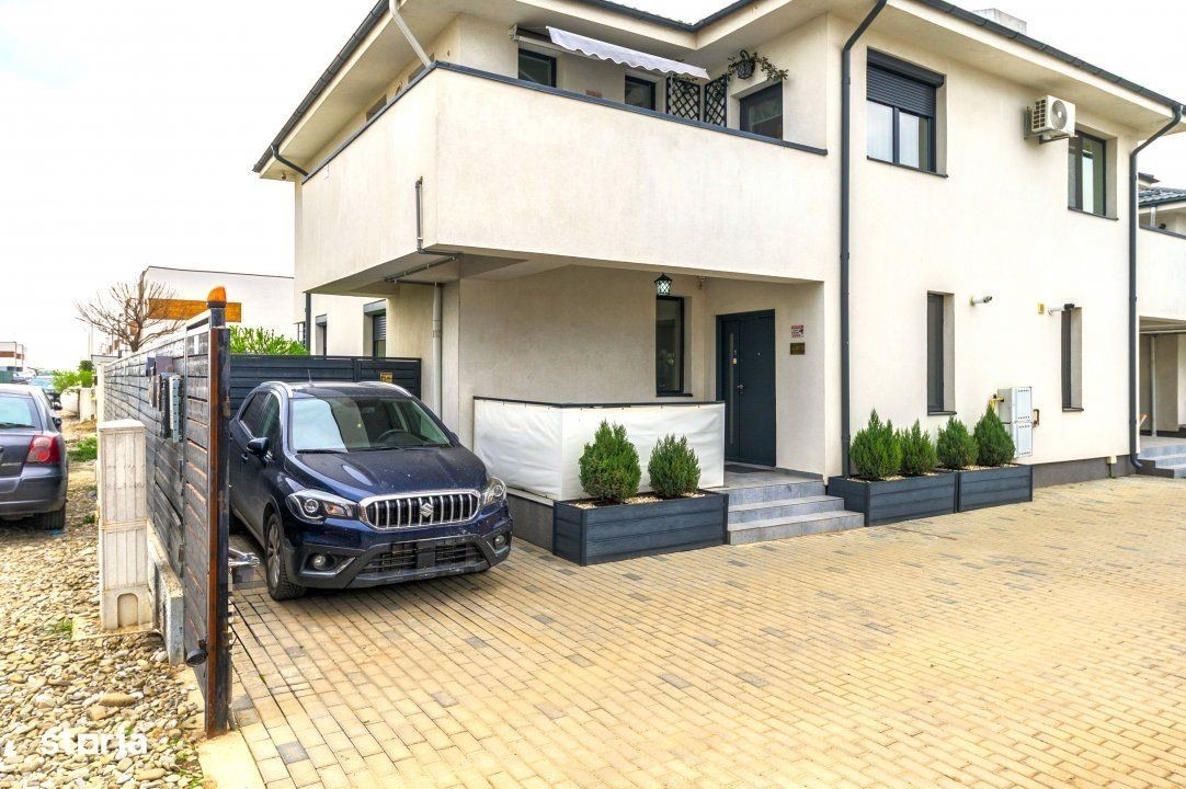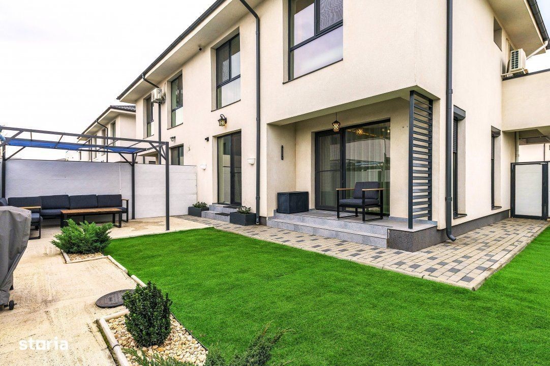 **Vila modernă cu 4 camere în Tunari - Confort și eleganță aproape de București*** Descoperă această vilă elegantă situată în Tunari, perfectă pentru cei care își doresc liniște și confort, dar cu acces rapid către oraș. Proprietatea este dispusă pe parter și etaj și oferă un spațiu generos, ideal pentru o familie. Vila are 4 camere, dintre care 3 dormitoare, unul fiind amenajat ca birou, dar ușor de transformat înapoi în dormitor, în funcție de nevoi. Bucătăria open-space creează un ambient modern și primitor, iar cele 3 băi[una dintre ele fiind transformata in dressing, cu posibilitatea de a reveni la o baie functionala] asigură confort pentru toți membrii familiei. Locuința este construită cu finisaje premium, având pereți placați cu ardezie, care oferă un aspect elegant și un plus de durabilitate. Tâmplăria Salamander Tripan asigură o izolare termică și fonică excelentă, iar pentru un plus de siguranță și intimitate, vila este dotată cu rulouri PVC la geamurile de la parter. La nivel de securitate, proprietatea dispune de senzori de mișcare la parter și sistem de alarmăpentru protecția locatarilor. În exterior, te poți bucura de o terasă amenajată cu gazon verde și pergolă, perfectă pentru relaxare. Separat, vila beneficiază de un puț de apă dedicat pentru irigarea grădinii, astfel încât întreținerea spațiului verde să fie eficientă și economică. Pentru eficiență energetică și confort sporit, casa este dotată cu centrală termică de 32 kW, care asigură încălzire optimă în orice sezon. De asemenea, podul casei este accesibil pentru depozitare și izolat cu spumă, oferind un spațiu suplimentar util. Această vilă nu doar că oferă un spațiu generos și modern, dar beneficiază și de o locație excelentă, cu numeroase facilități ideale pentru o familie. Situată pe Strada 1 Decembrie din Tunari, proprietatea se află într-o zonă liniștită, dar cu acces rapid la toate punctele de interes din apropiere. Viitorii proprietari vor avea la dispoziție parcuri pentru copii, perfecte pentru momentele de relaxare în aer liber, supermarketuri și restaurante, aflate la doar câțiva pași, pentru cumpărături rapide sau cine în oraș. De asemenea, accesul la instituții de învățământ din apropiere, precum Școala Gimnazială Nr. 1 Tunari și Grădinița „Prichindel”, face ca această locuință să fie ideală pentru familiile cu copii. Transportul este facilitat de stațiile de autobuz din zonă, cu liniile 403 și 459, care asigură conexiuni rapide către București. Linia 459 oferă legătură directă cu stația de metrou Aurel Vlaicu, facilitând accesul rapid la centrul orașului. Această vilă reprezintă combinația perfectă între un stil de viață modern, siguranță, confort și acces la facilități esențiale pentru orice familie. Nu rata ocazia de a transforma această proprietate în căminul tău! Contactează-ne pentru mai multe detalii sau pentru a programa o vizionare!